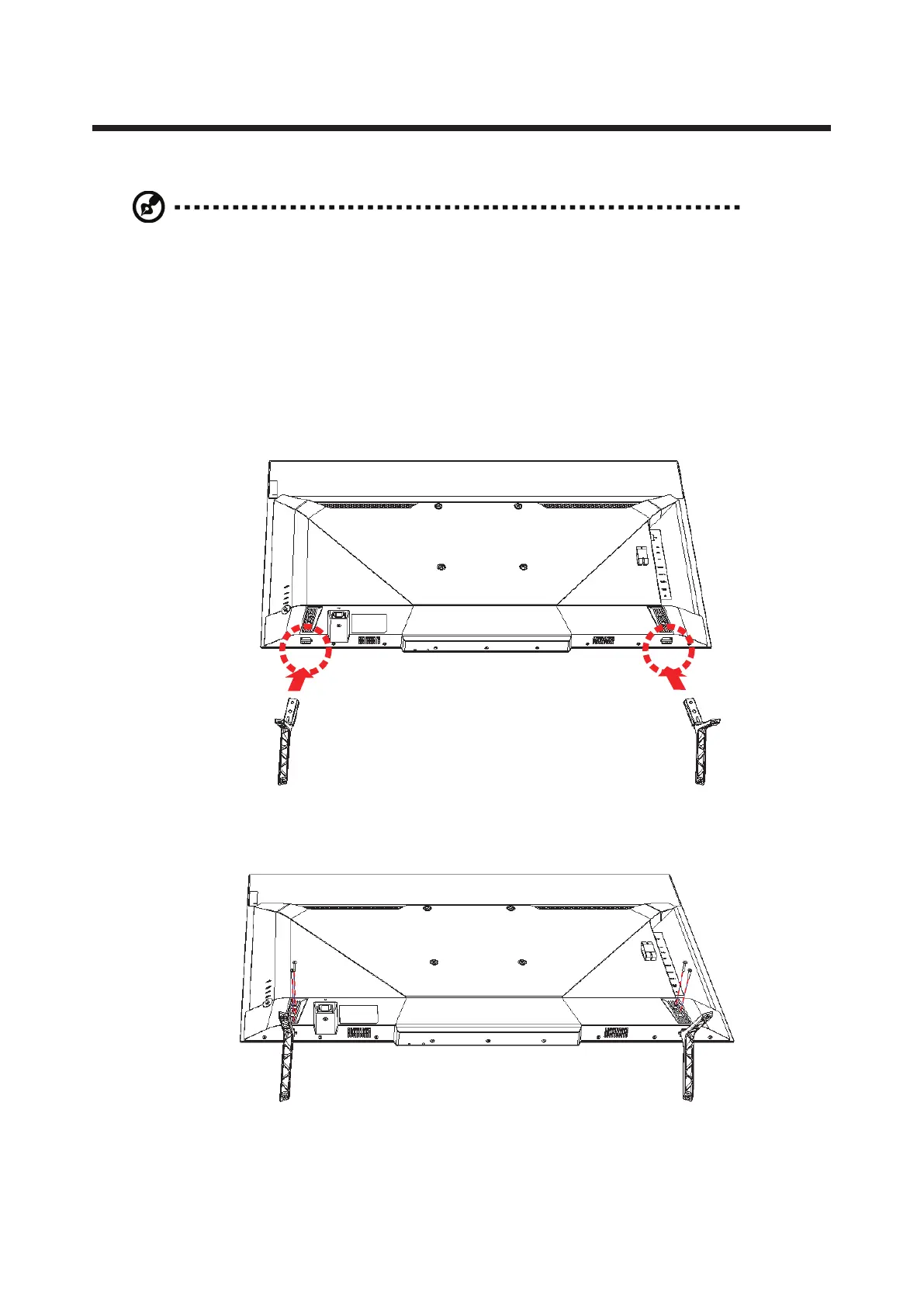 3. Secure the monitor bases with the four screws.