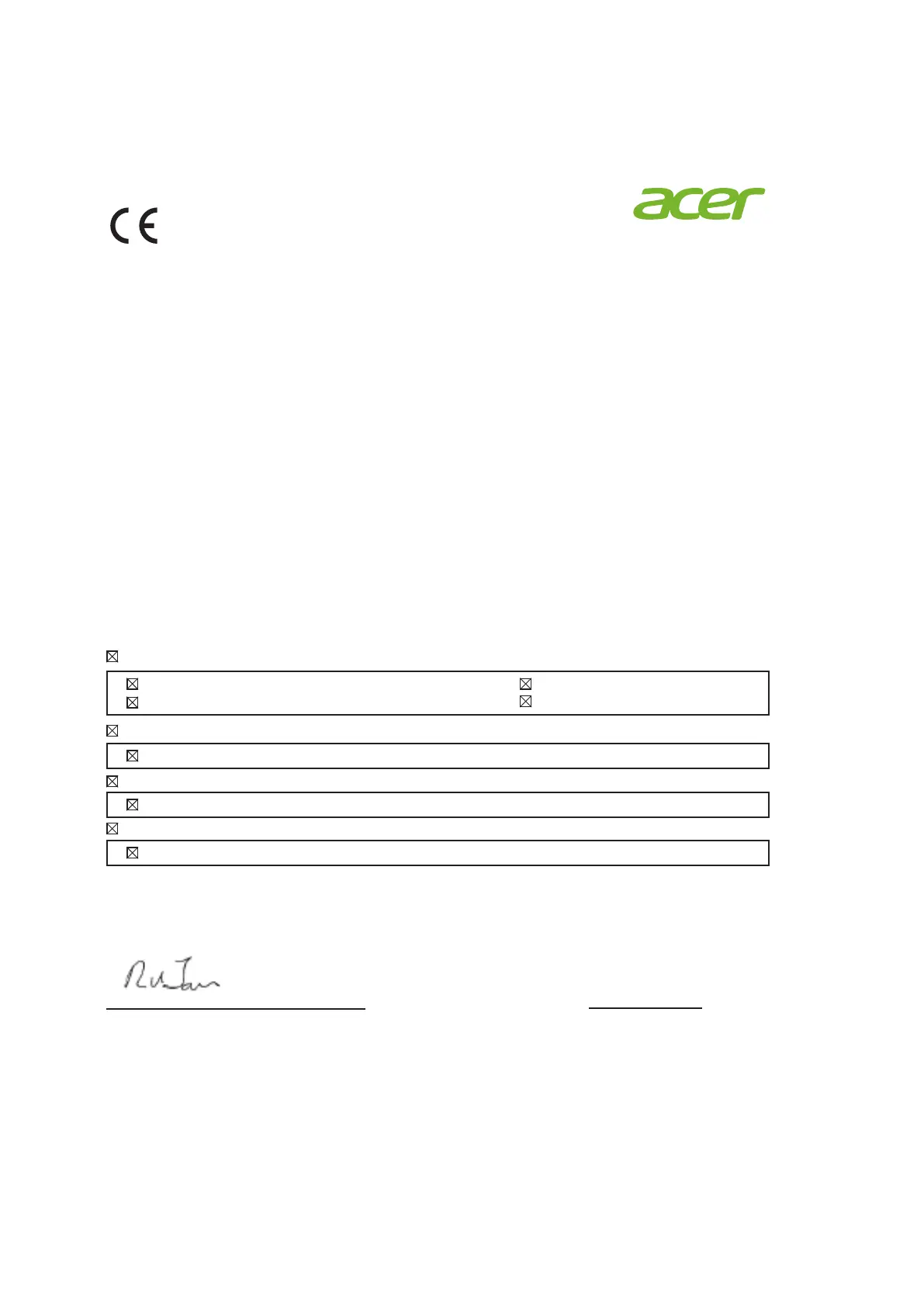 We, Acer Incorporated, hereby declare under our sole responsibility that the product described above is in