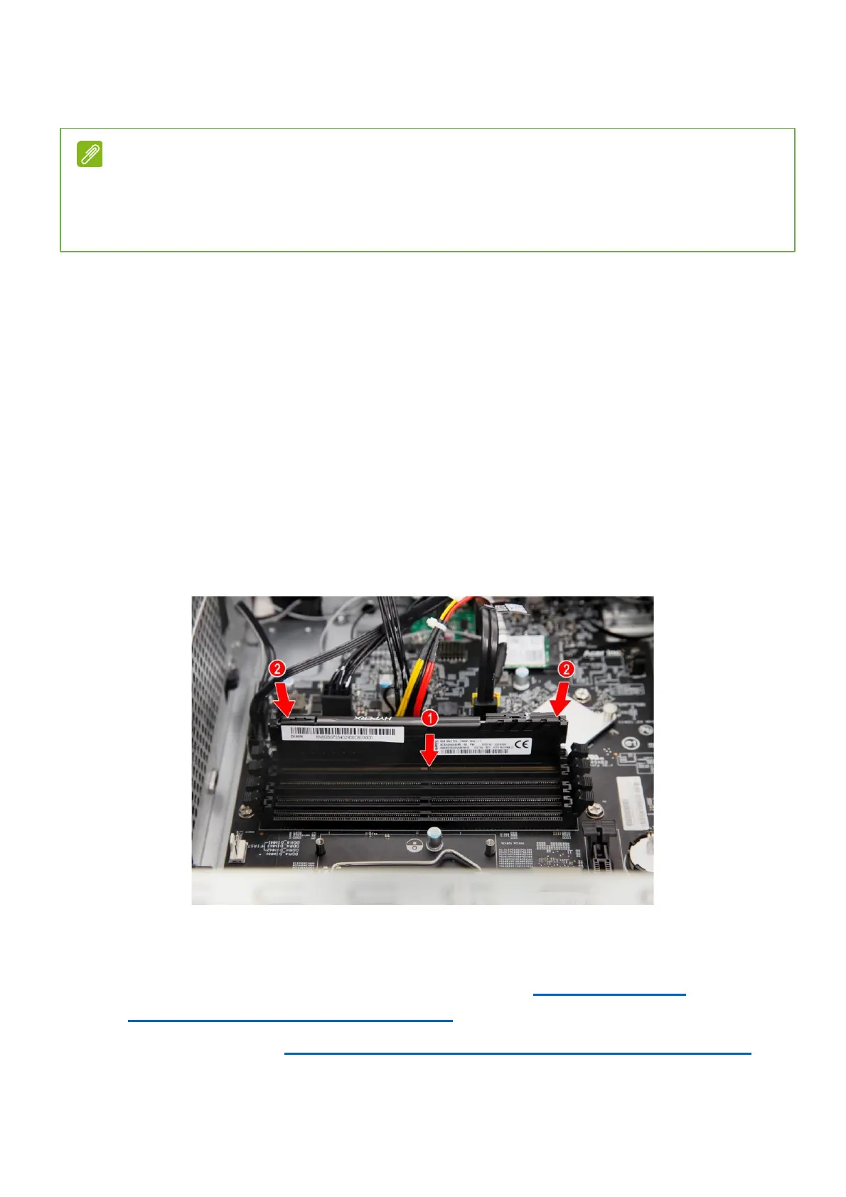 Be sure to install the memory module in DIMM1 slot followed by DIMM2 slot.