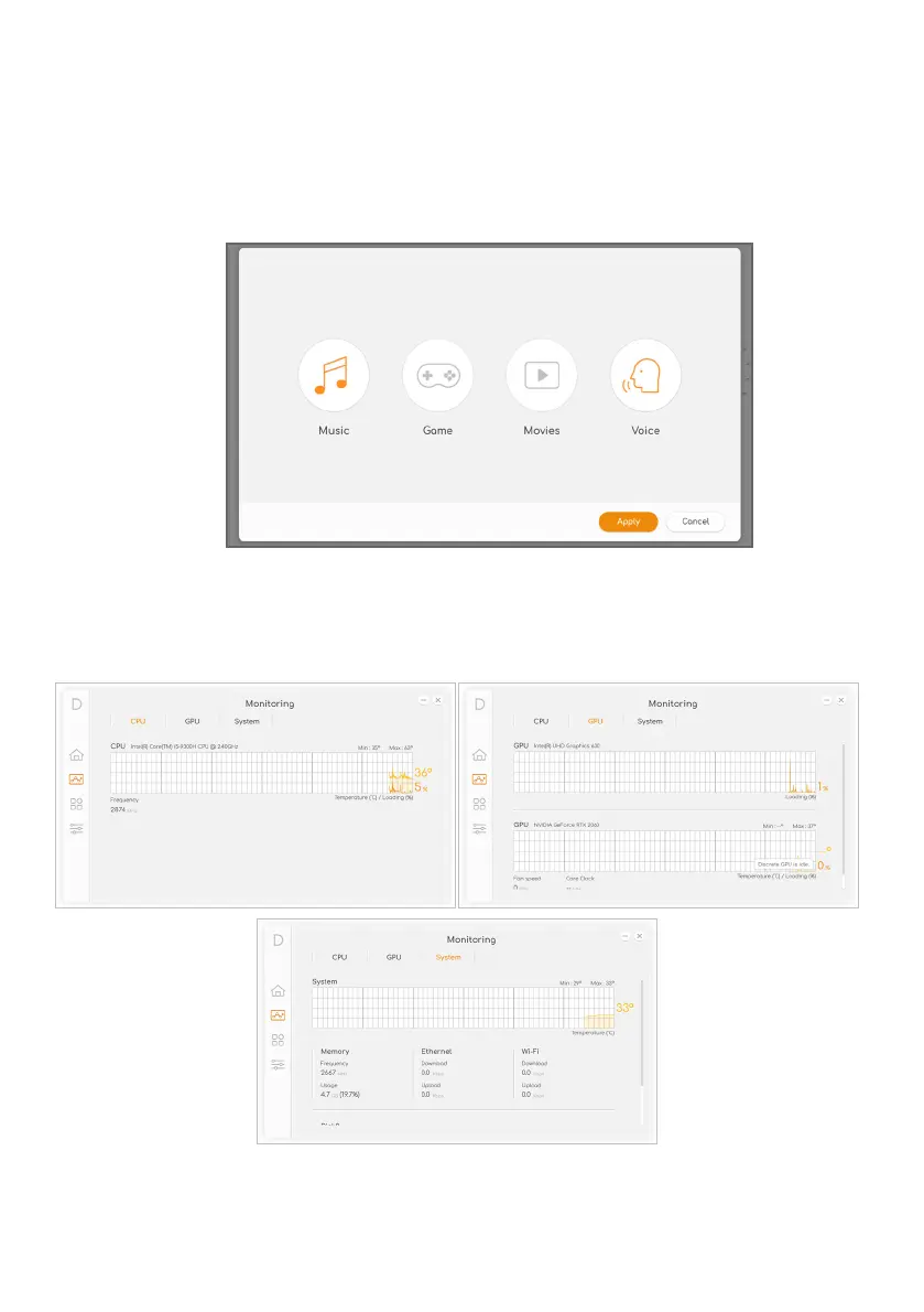 From Monitoring page, click CPU, GPU or System tab to check