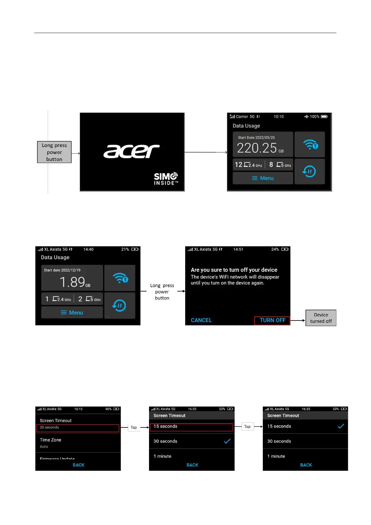 To turn your Acer Connect M3 off, press and hold the power button for 3 seconds until