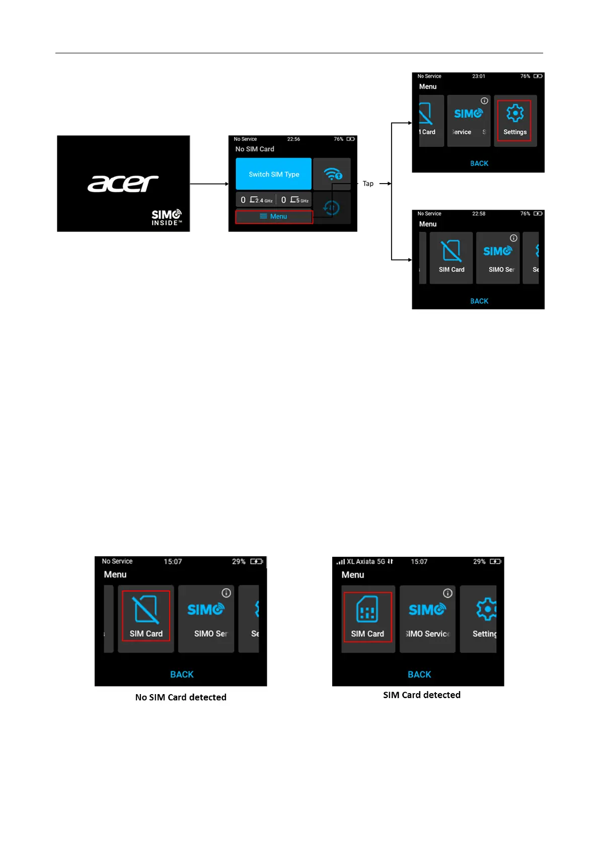 step until prompted Select SIM Type. If the user has already inserted a SIM card, the system will