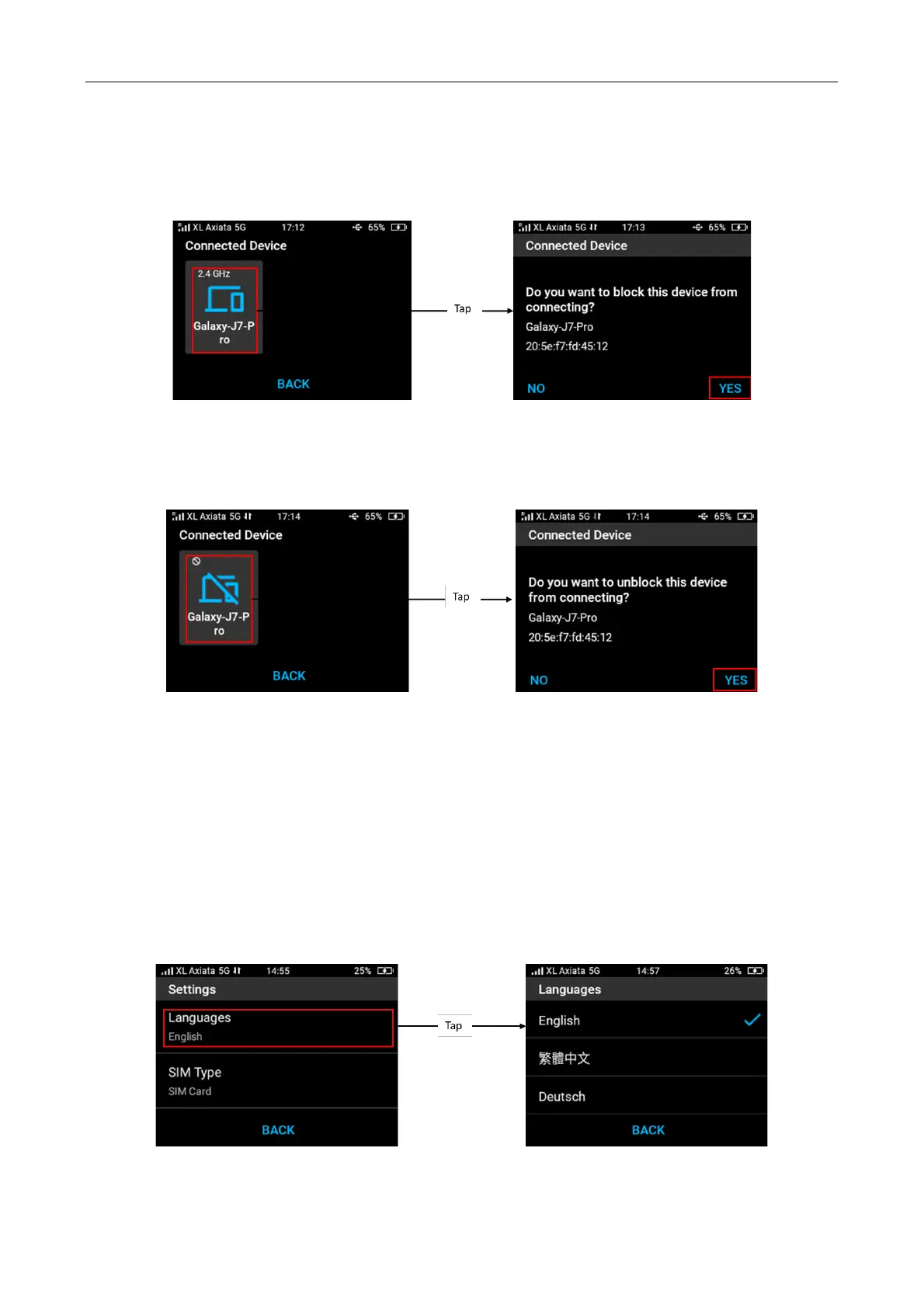 device. To block a device, tap Menu from home screen > Connected Device > select device you