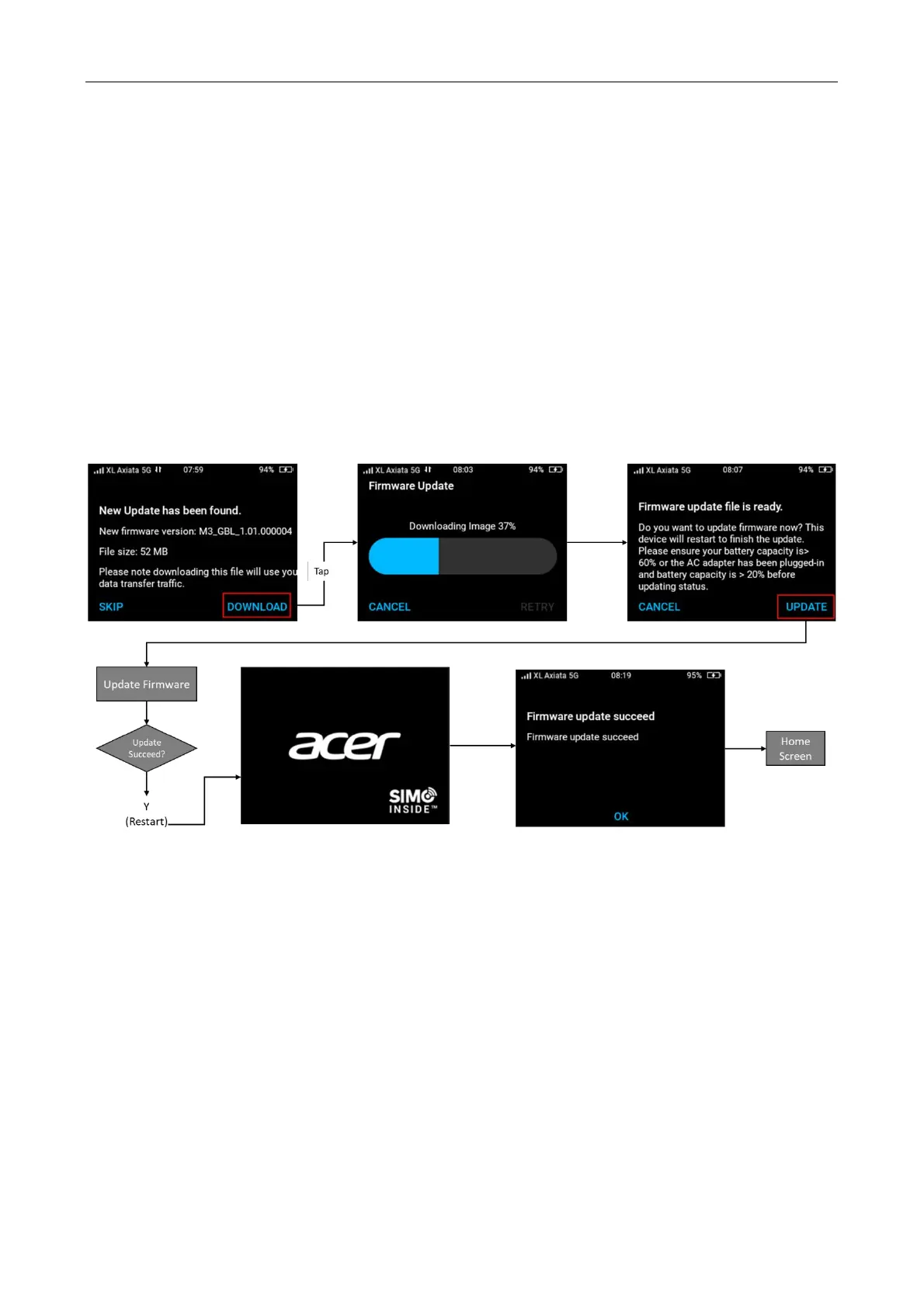 When you select the auto firmware update option, Acer Connect M3 will check the new