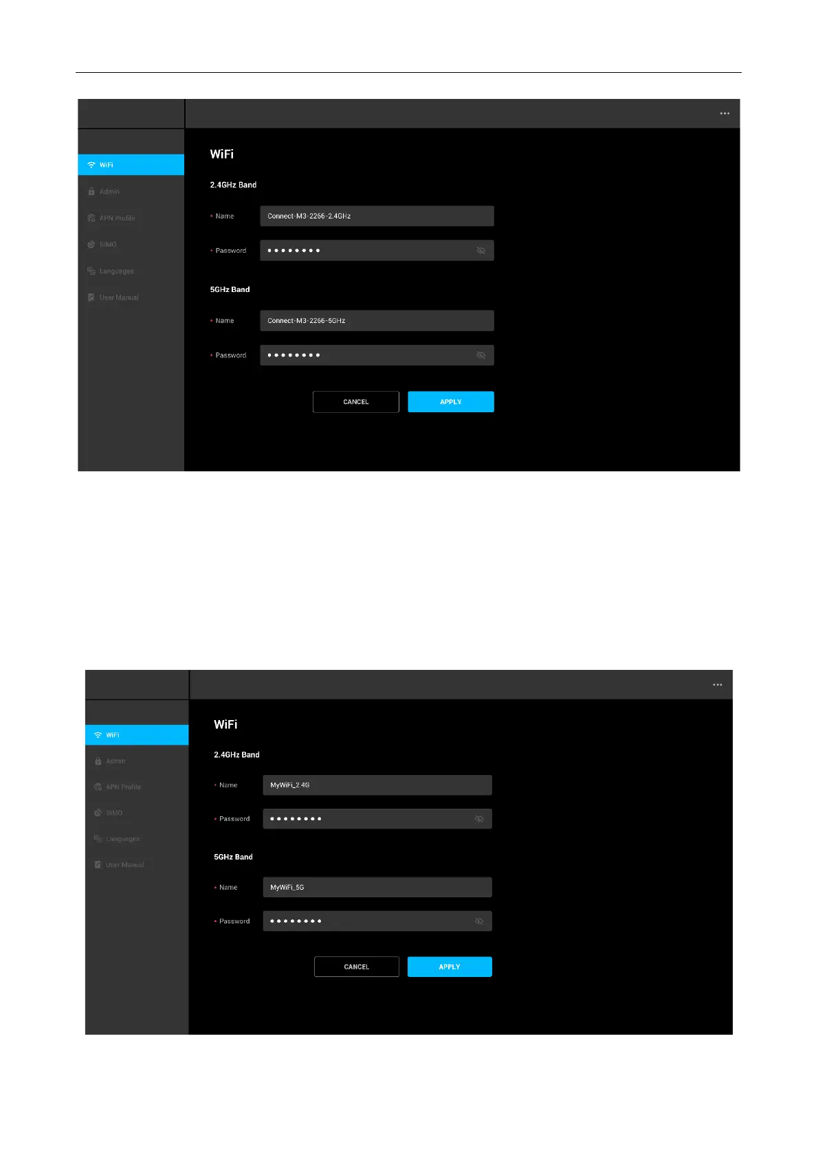 • Change the Wi-Fi Name of the 2.4 GHz network, which is MyWi-Fi_2.4G in this example.