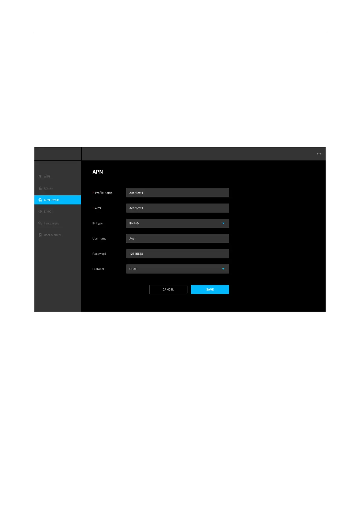 2. Input the required parameters inquired from your network provider, such as Profile Name,