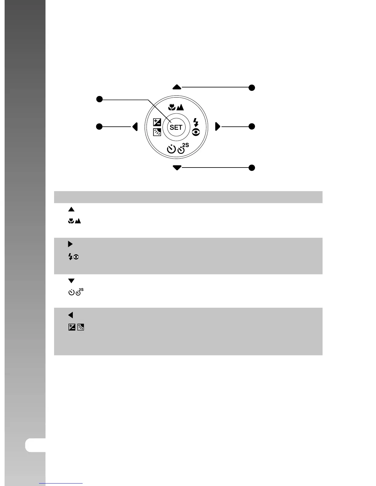 Self-timer button Allows you to toggle the self-timer on and