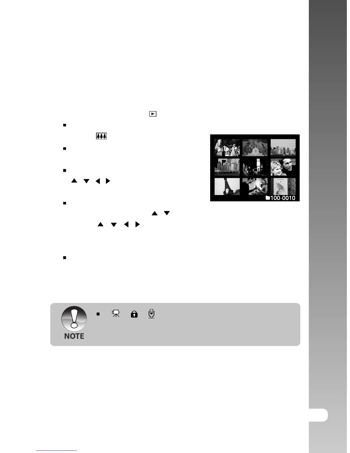 This function allows you to view 9 thumbnail images on the LCD monitor at the