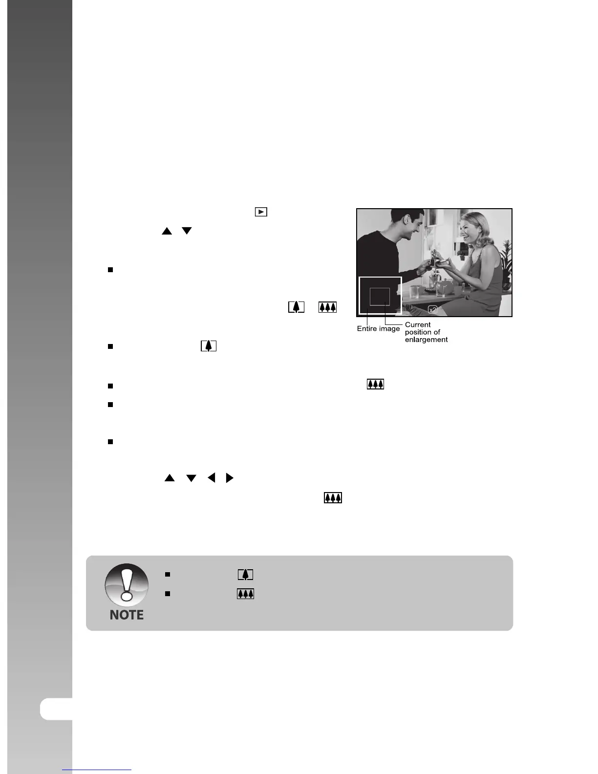 Images that are being play back can be enlarged and displayed in 2 levels of 2