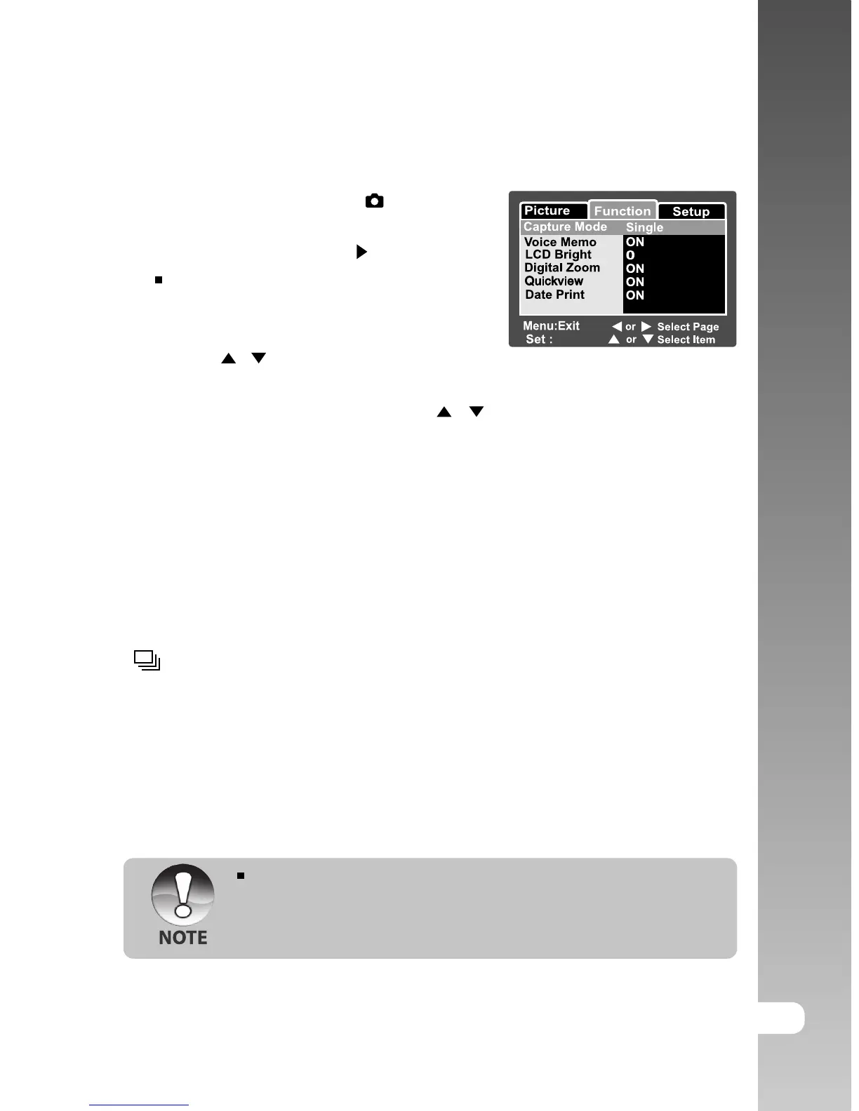 [Function] of the still image menu is
