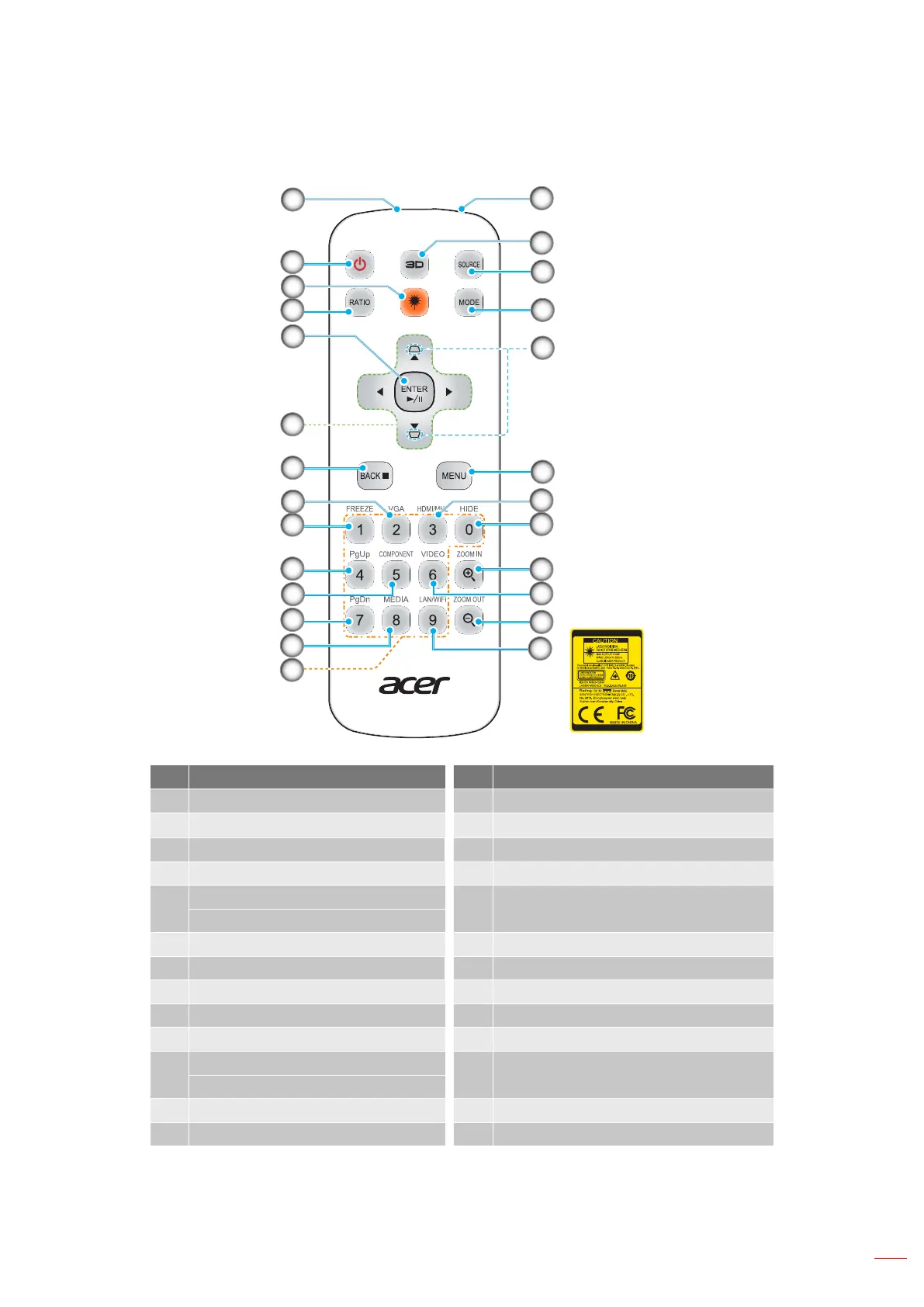 1. Infrared transmitter 14. PgUp (not supported)