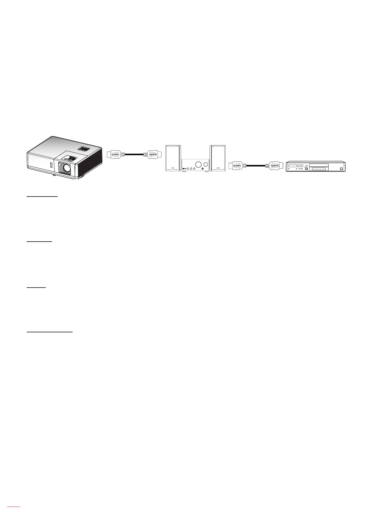 in a typical conguration, your DVD player may be connected to the projector through an amplier or