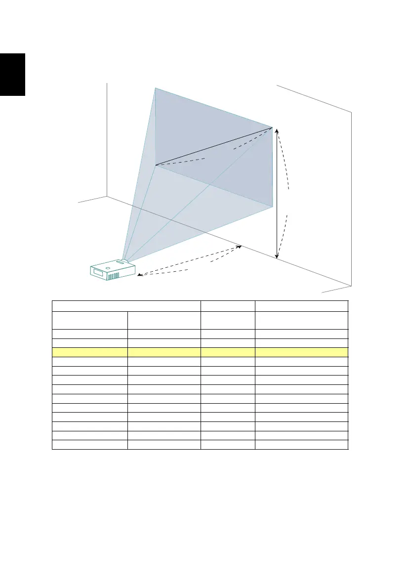 To obtain an image size of 60" set the projector at a distance 0.7 m from the
