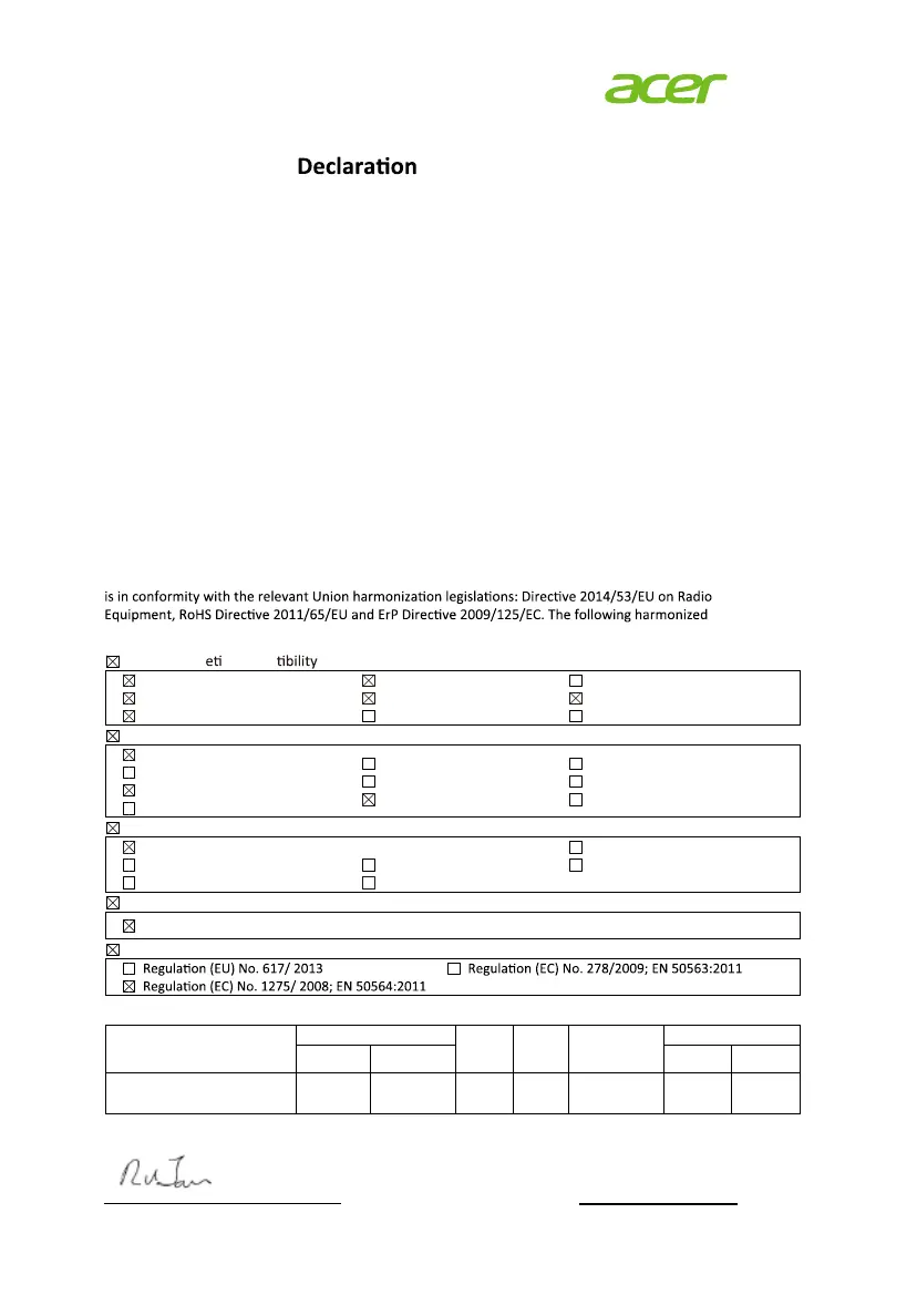 We, Acer Incorporated, hereby declare under our sole responsibility that the product described above