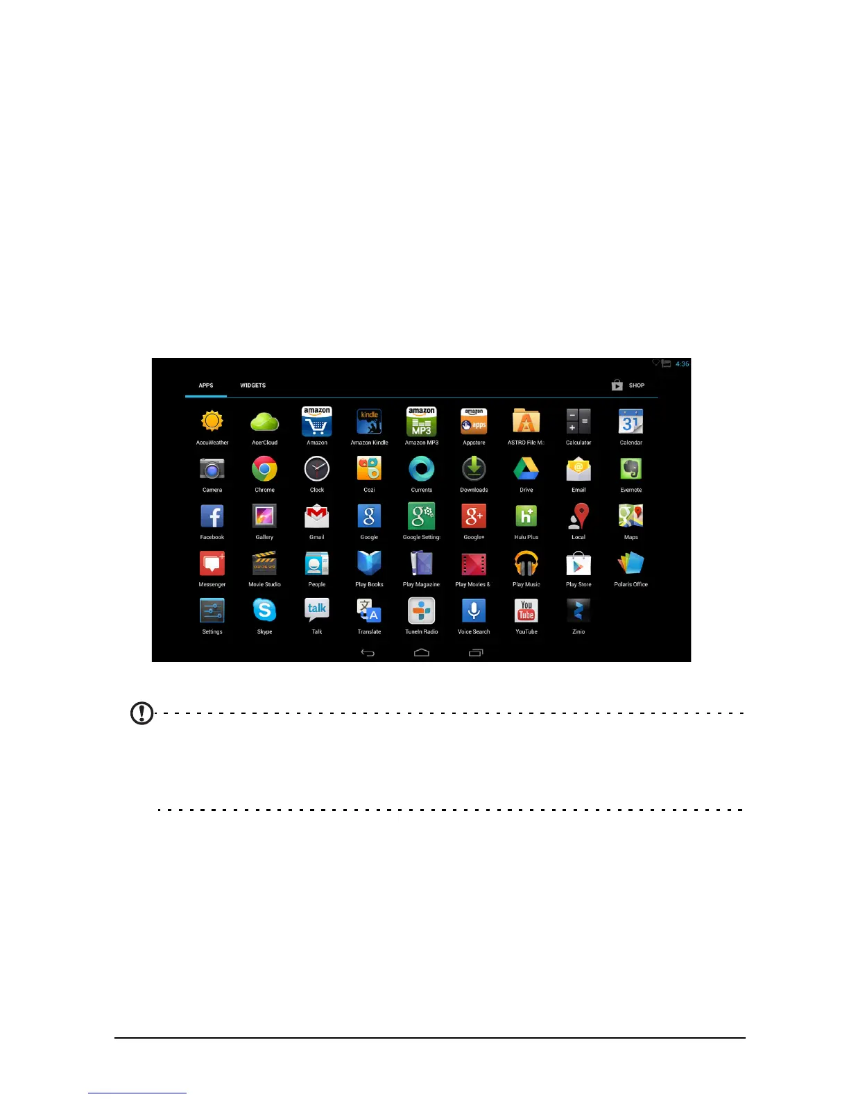 The App menu displays applications and widgets available on your DA241HL.