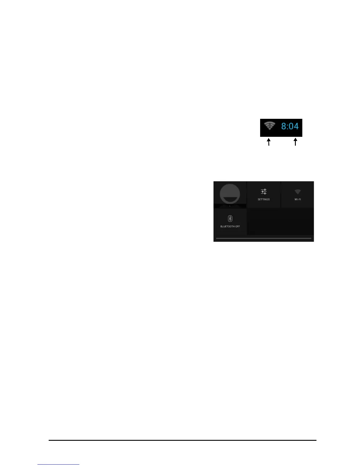 indicate connectivity status. The left side of the clock displays