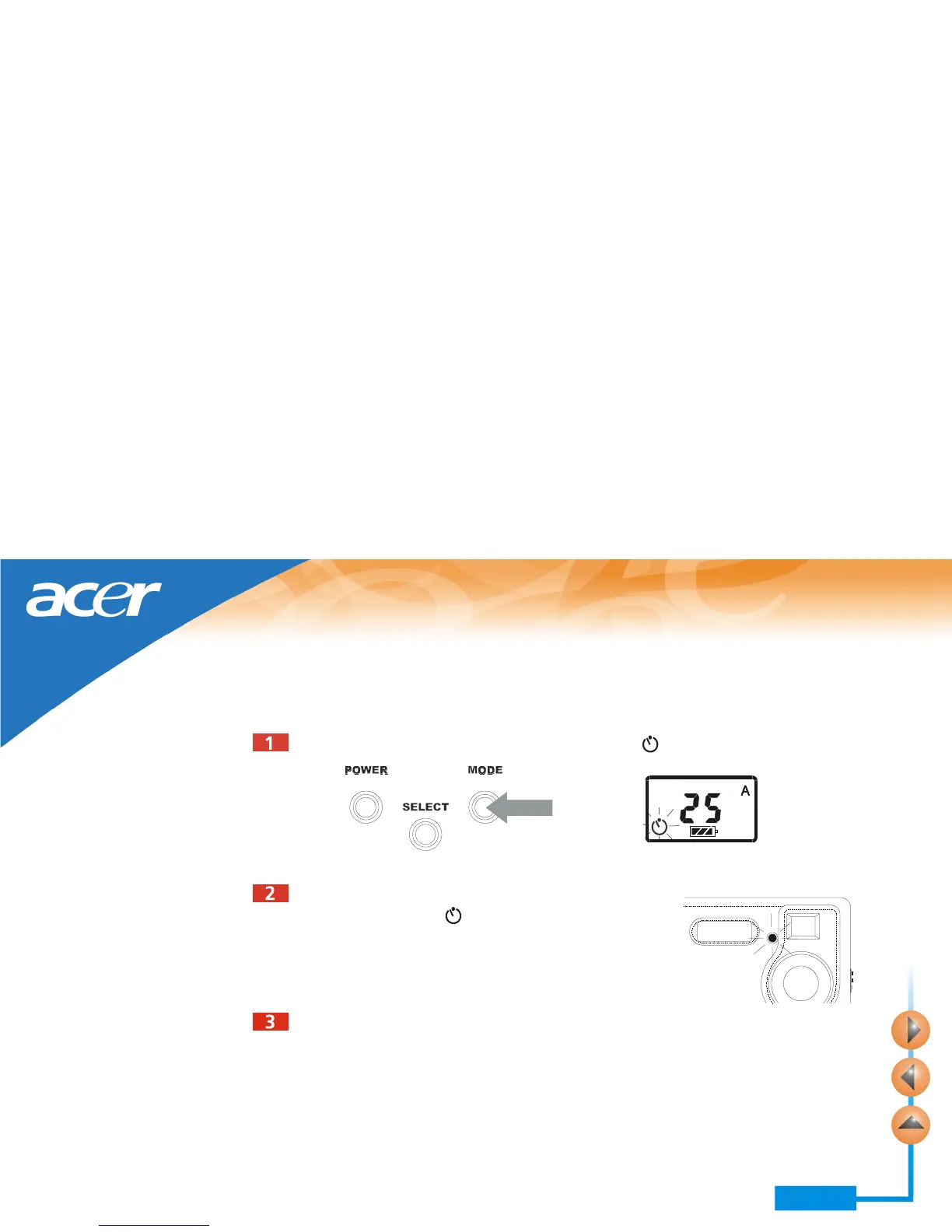 Press the MODE button 3 times. The self-timer icon will flash.