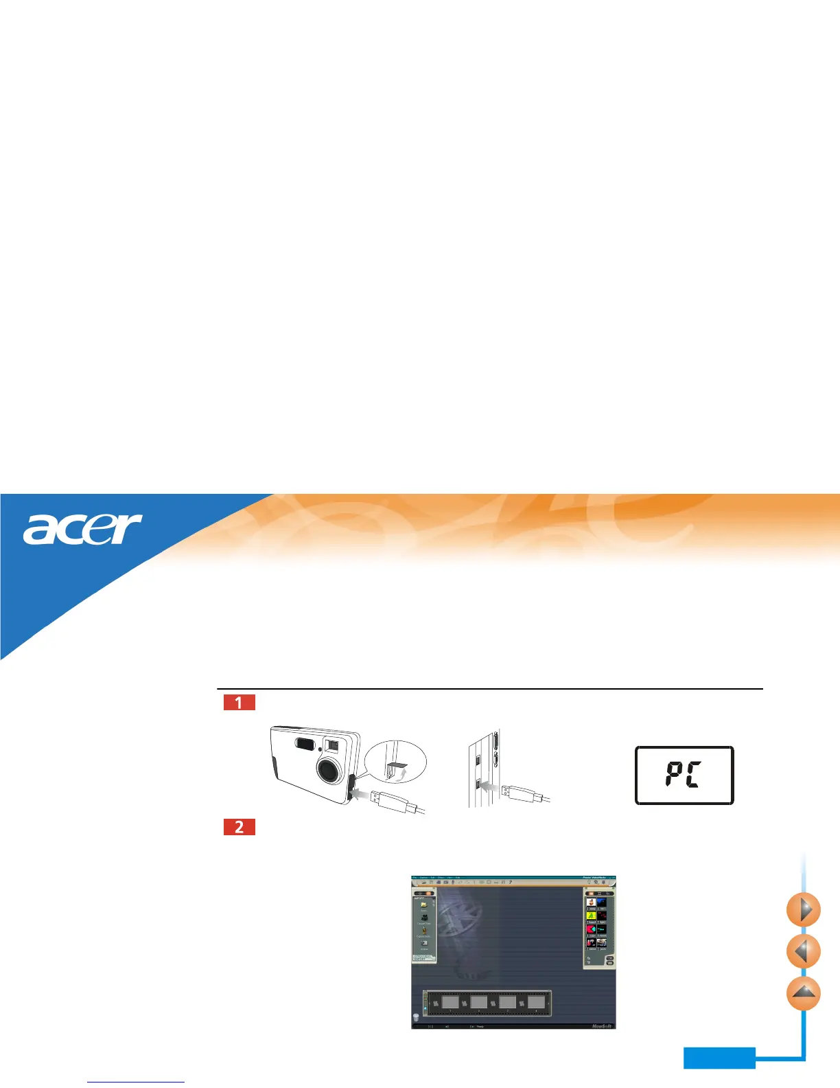 Refer to the illustration below to connect the camera to PC using the USB cable. “PC”