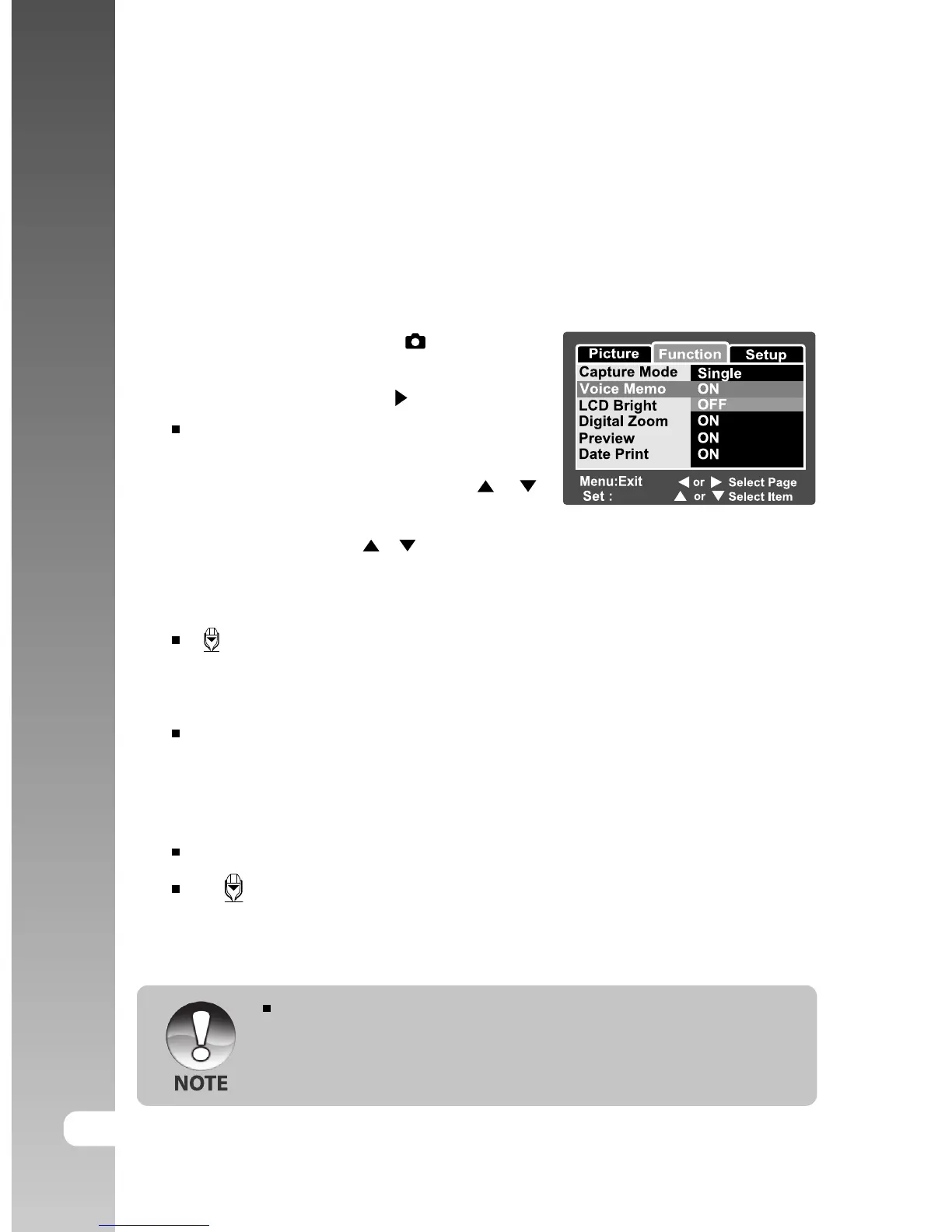 [Function] of the still image menu is