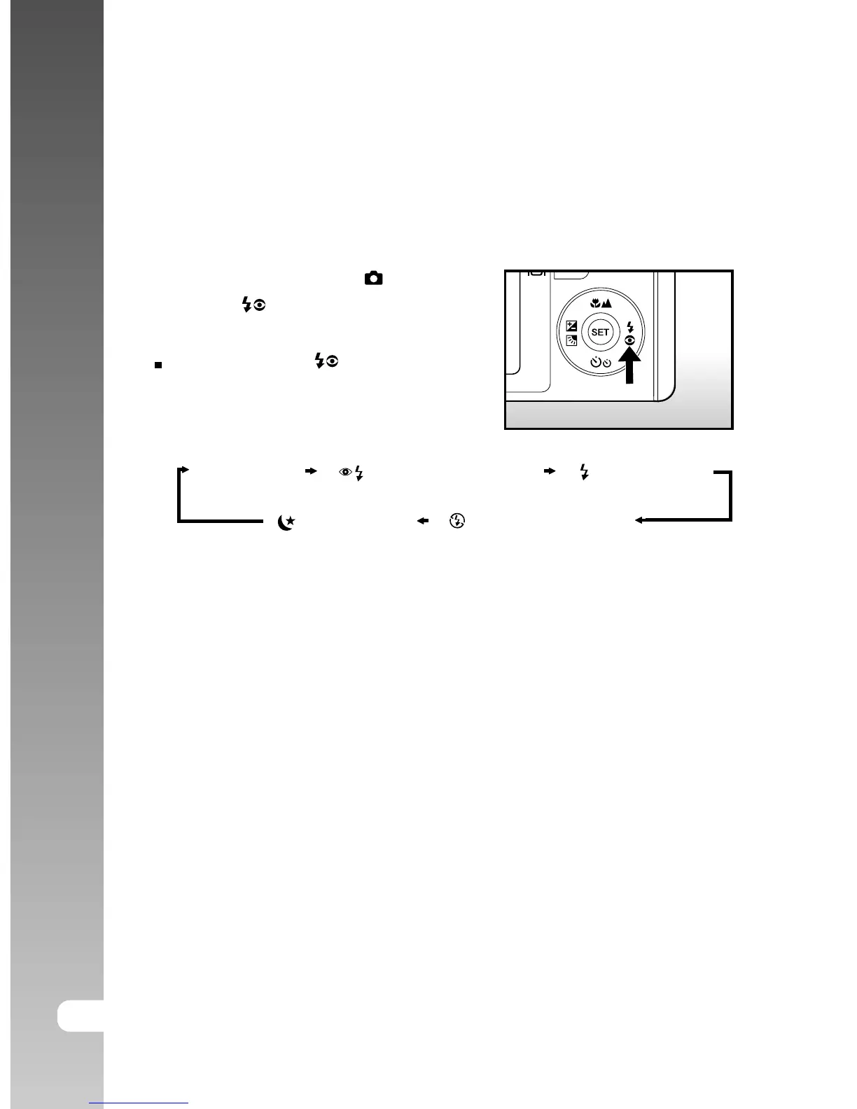 Set the flash for taking photographs. The flash firing mode can be set to suit for