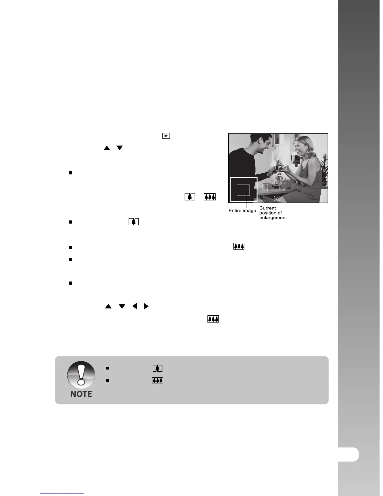 Images that are being play back can be enlarged and displayed in 2 levels of 2