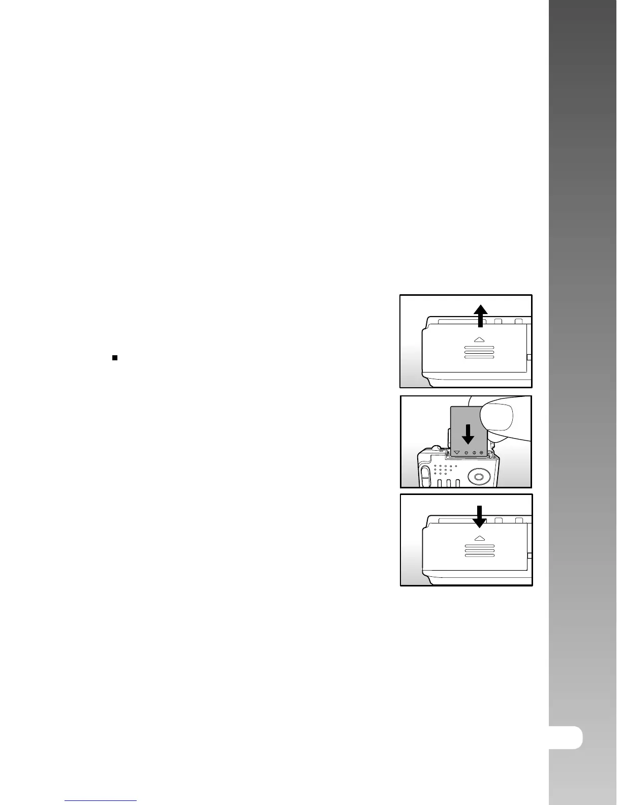 camera. Make sure that the power of the camera is off before inserting or