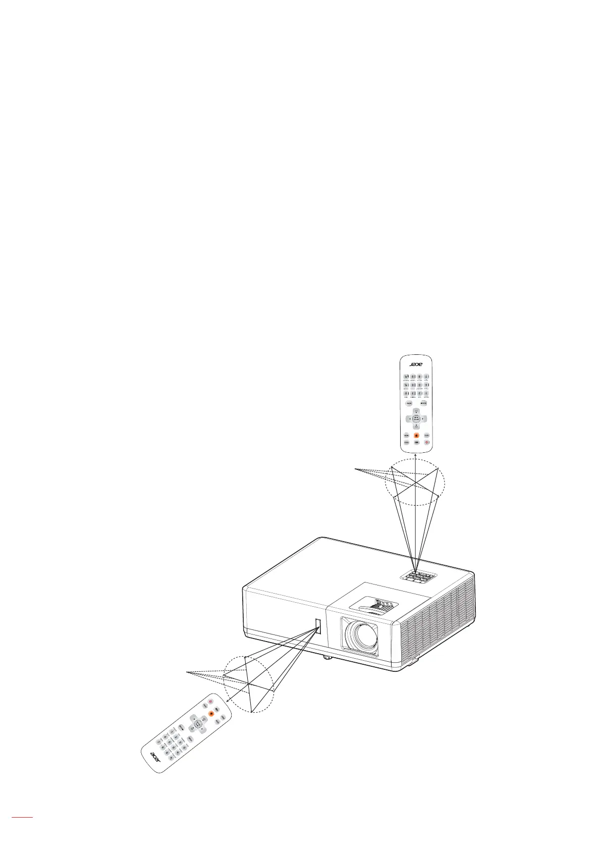 Infra-Red (IR) remote control sensor is located on the top and front sides of the projector. Ensure to hold the