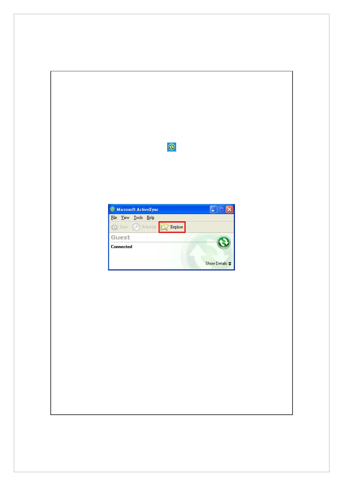 Click Explore on the Microsoft ActiveSync on the personal computer to access