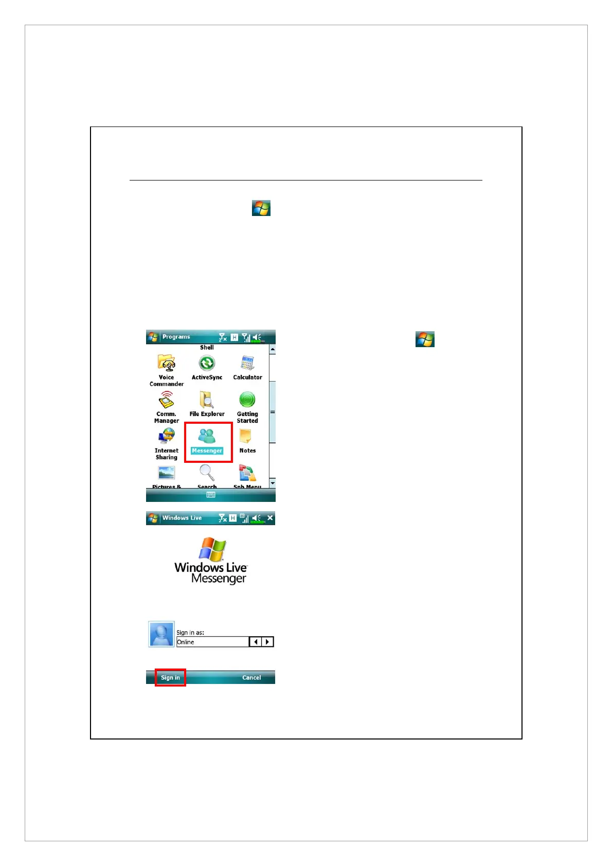 On the Today screen, tap Messenger to display the Windows Live™
