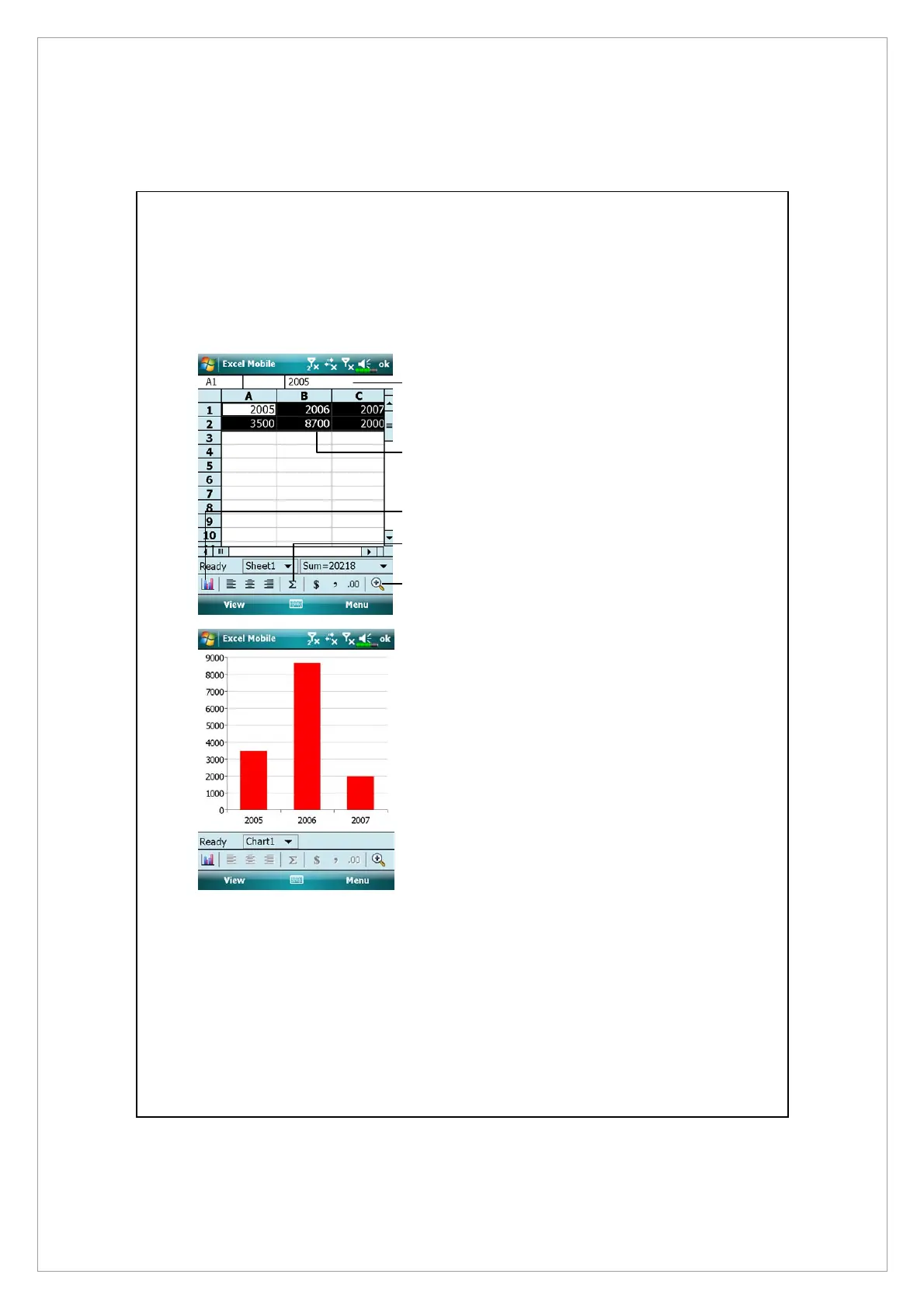 Excel Mobile provides fundamental spreadsheet tools, such as formulas,