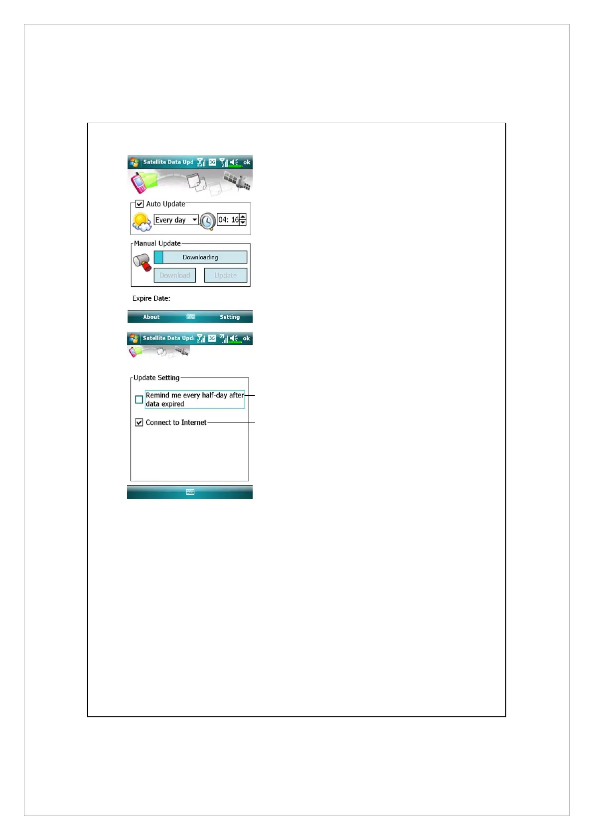 Satellite Data Update main screen