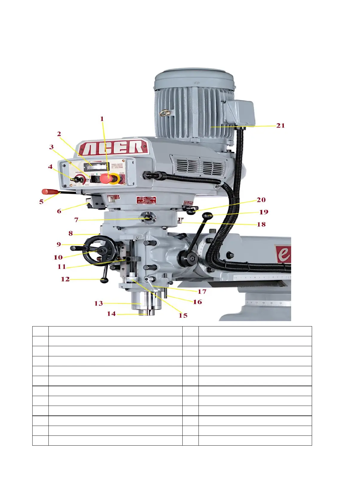1 EMERGENCY STOP 11 QUILL STOP KNOB