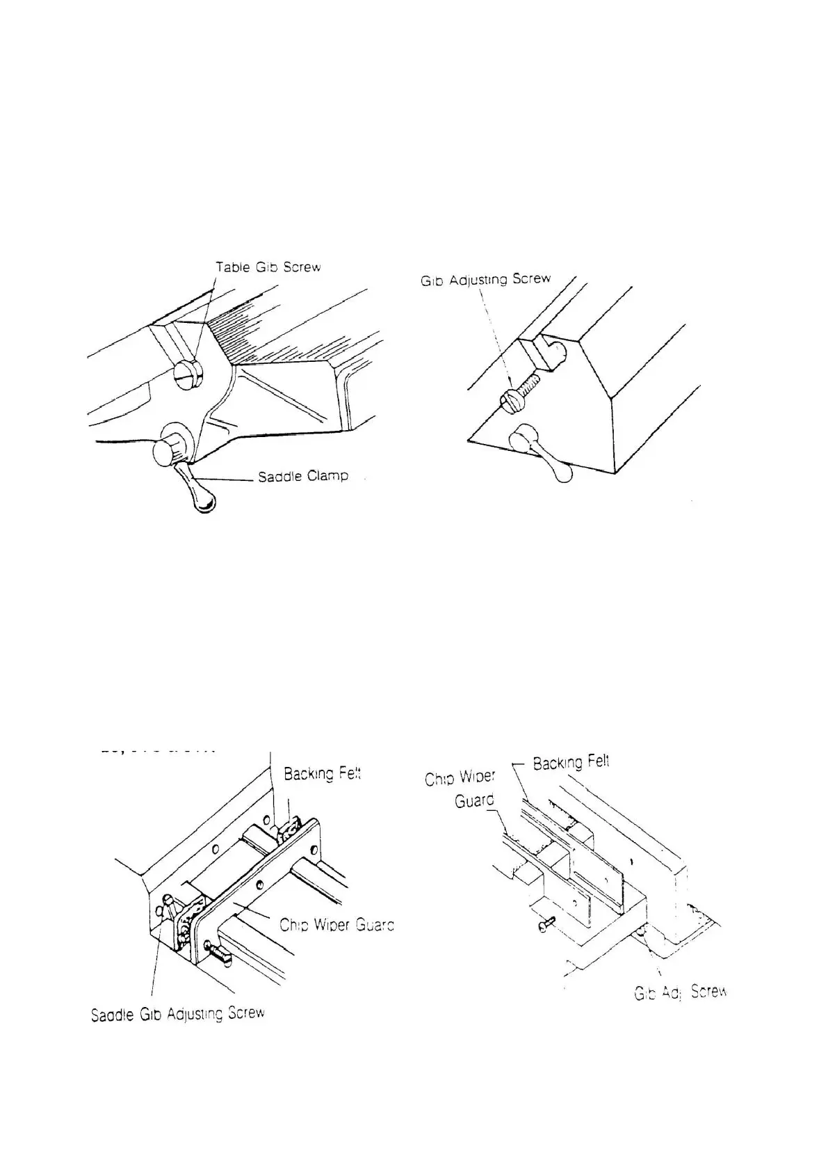 guide for the saddle. To tighten gib, remove chip wiper and use the same method