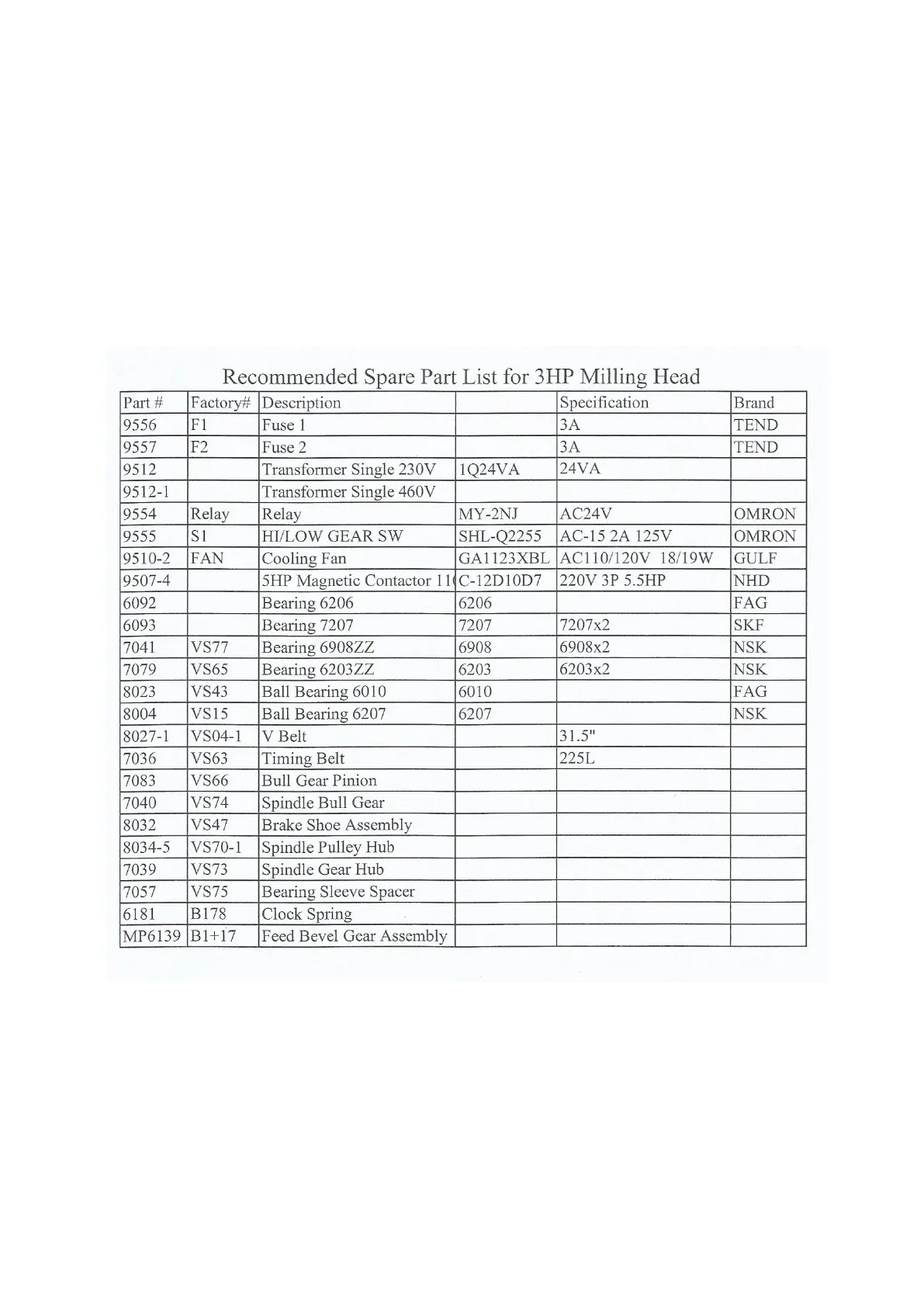 Spare parts are always a concern for the users. Below lists are recommended by the