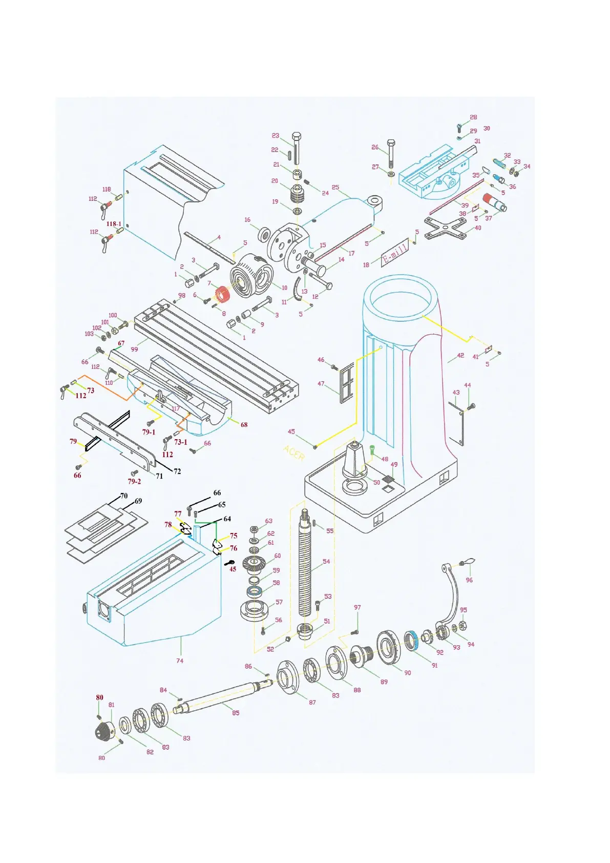 Acer e-mill 3VSII - 3 VS & 3 VSII Basic Machine Exploded View