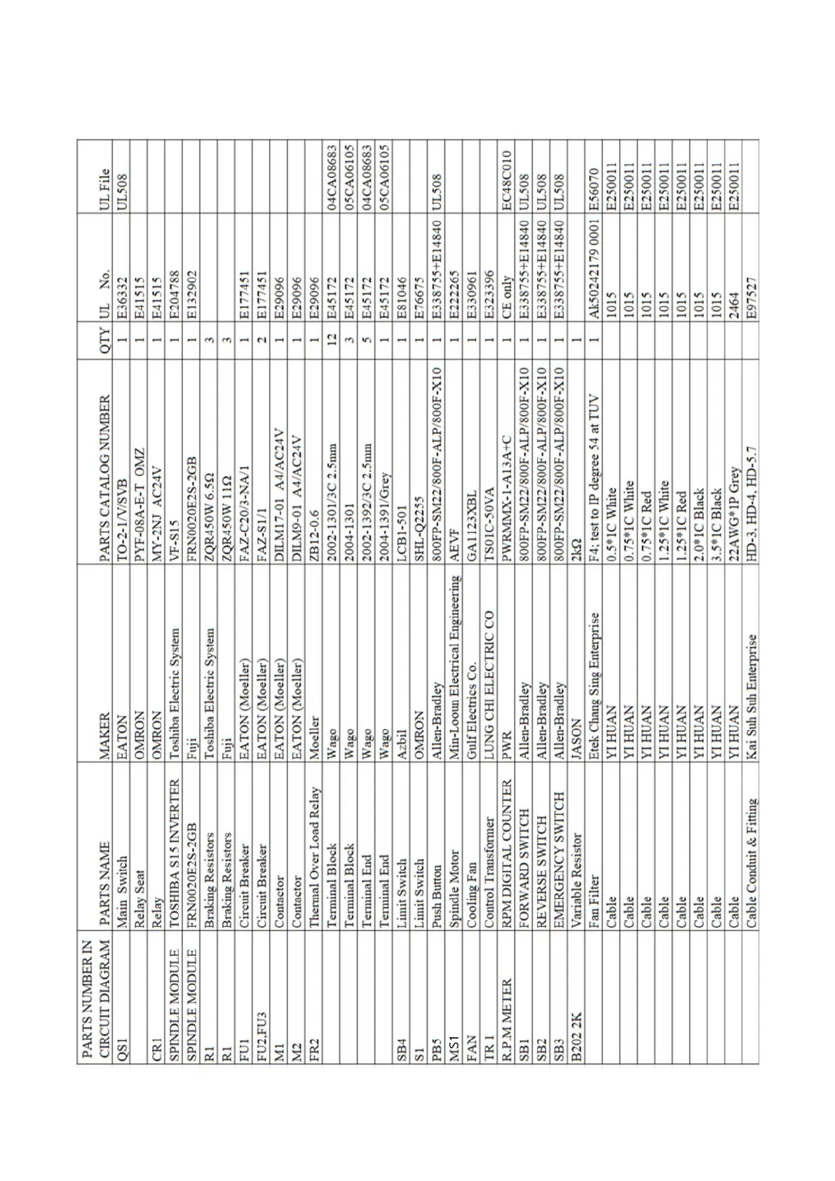 Electric Component List