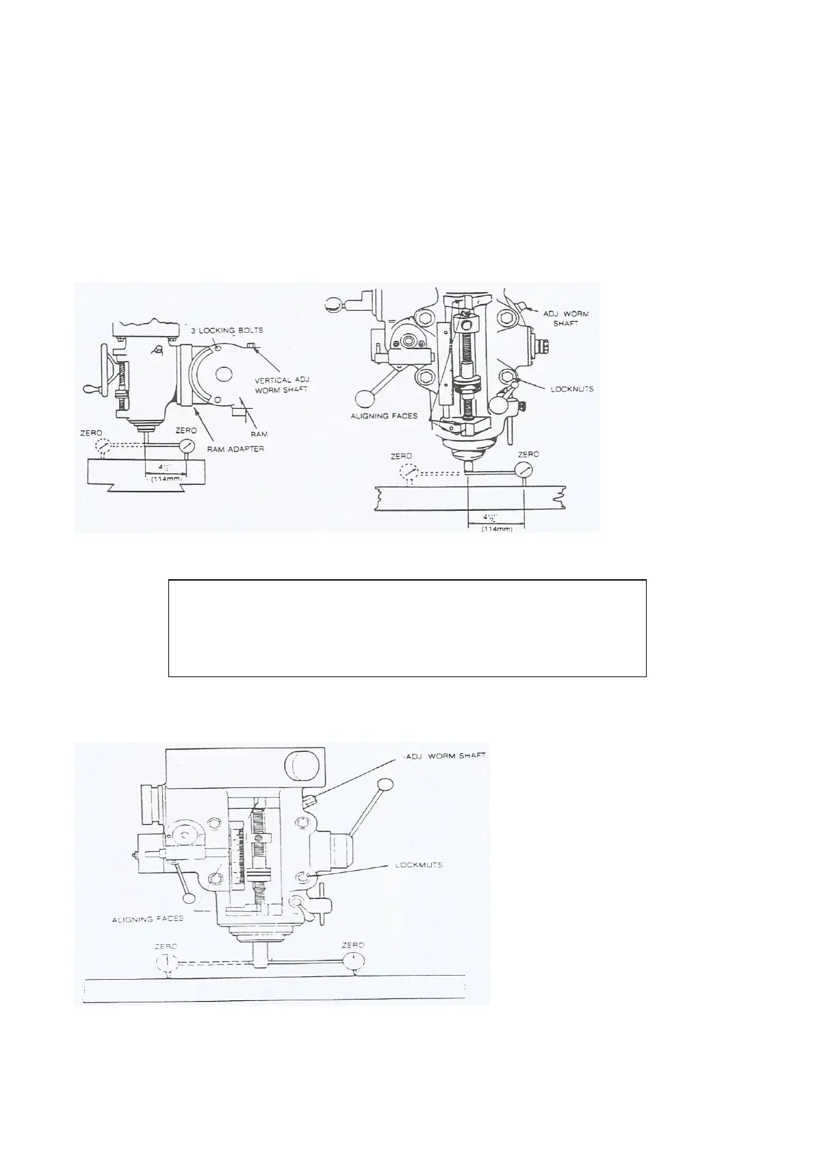 vertical adjusting worm shaft. Loosen four locknuts, but leave some drag for fine