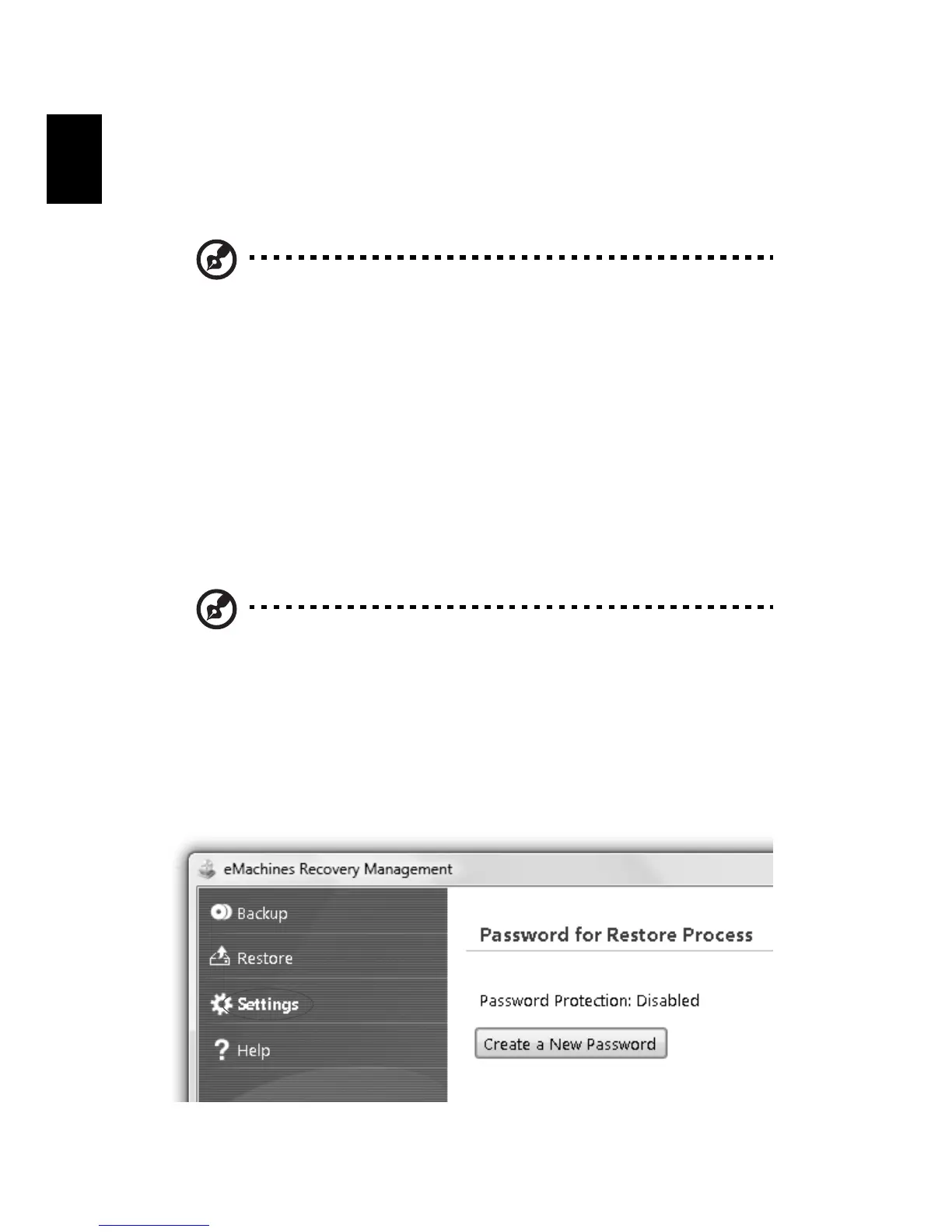 Le mot de passe est défini en lançant eMachines Recovery Management et en