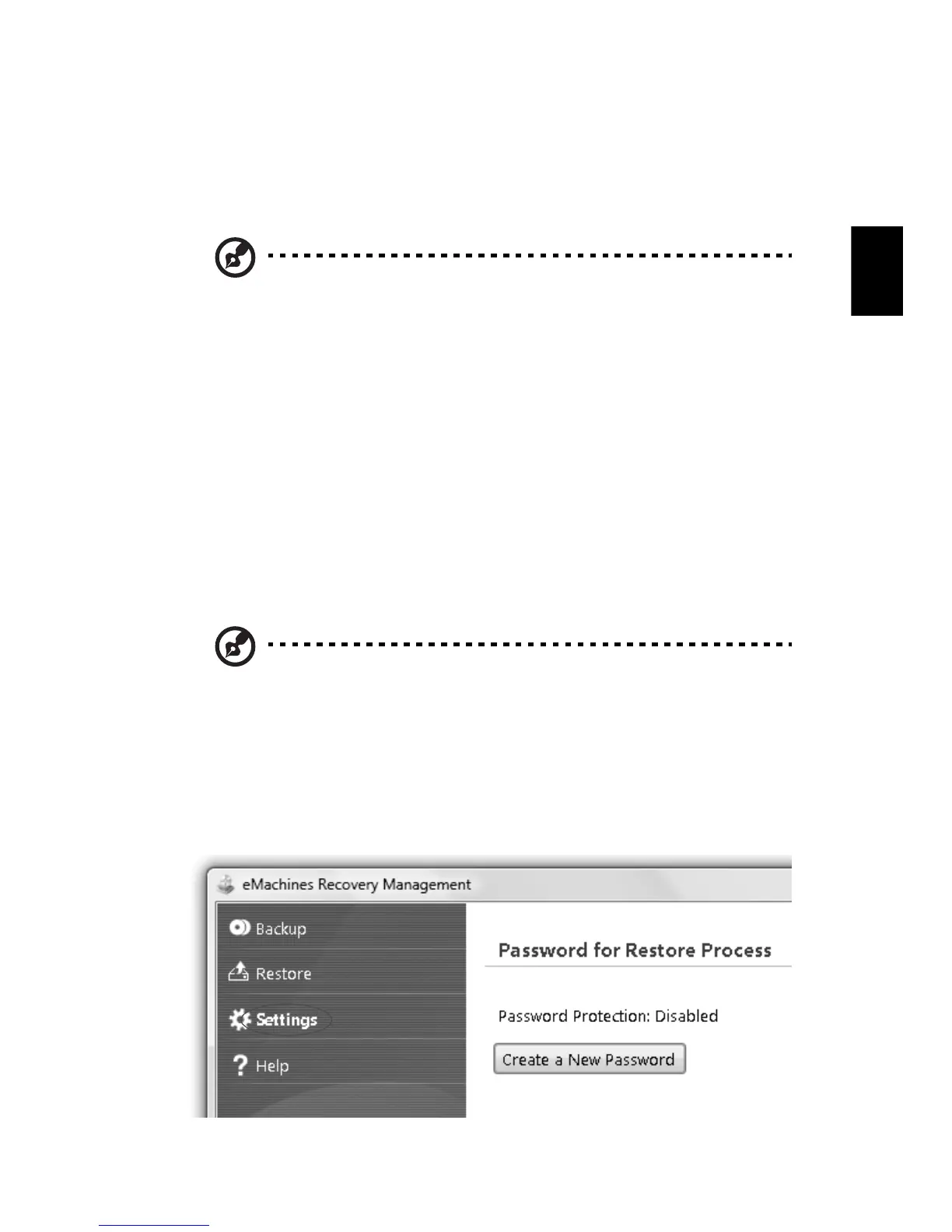 Pentru a utiliza funcţia de protecţie cu parolă eMachines Recovery Management,