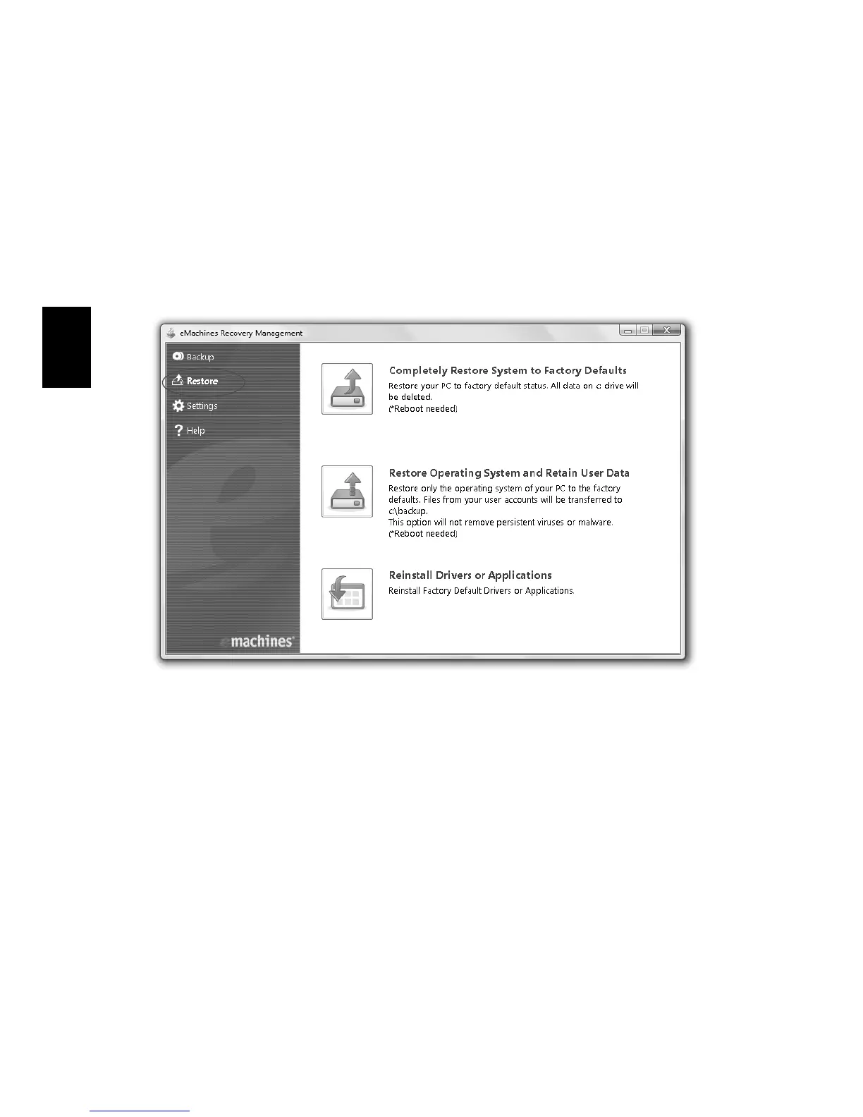 1 Кликнете Старт, Всички програми, eMachines, eMachines Recovery