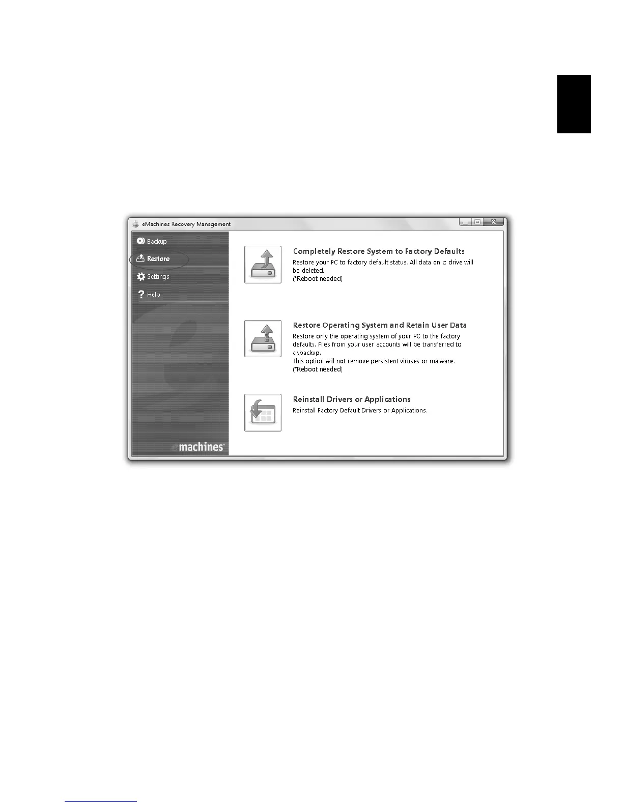 1 Bütün Başlat, Programlar, eMachines, eMachines Recovery Management,