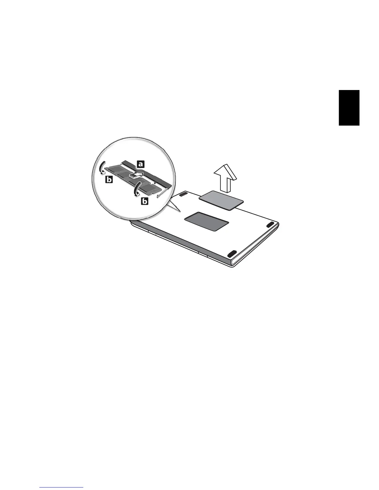 3 (a) Masukkan modul memori ke slot secara diagonal, lalu (b) tekan