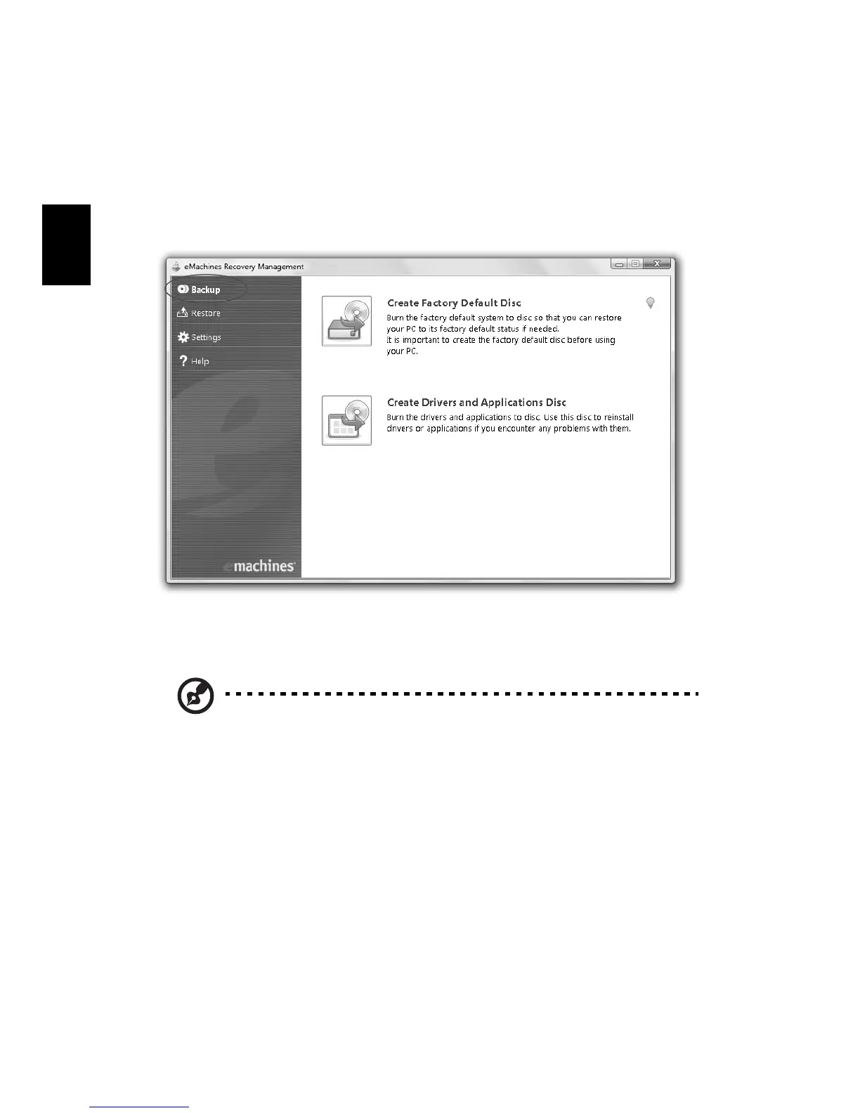 1 Klik Start, All Programs, eMachines, eMachines Recovery Management.