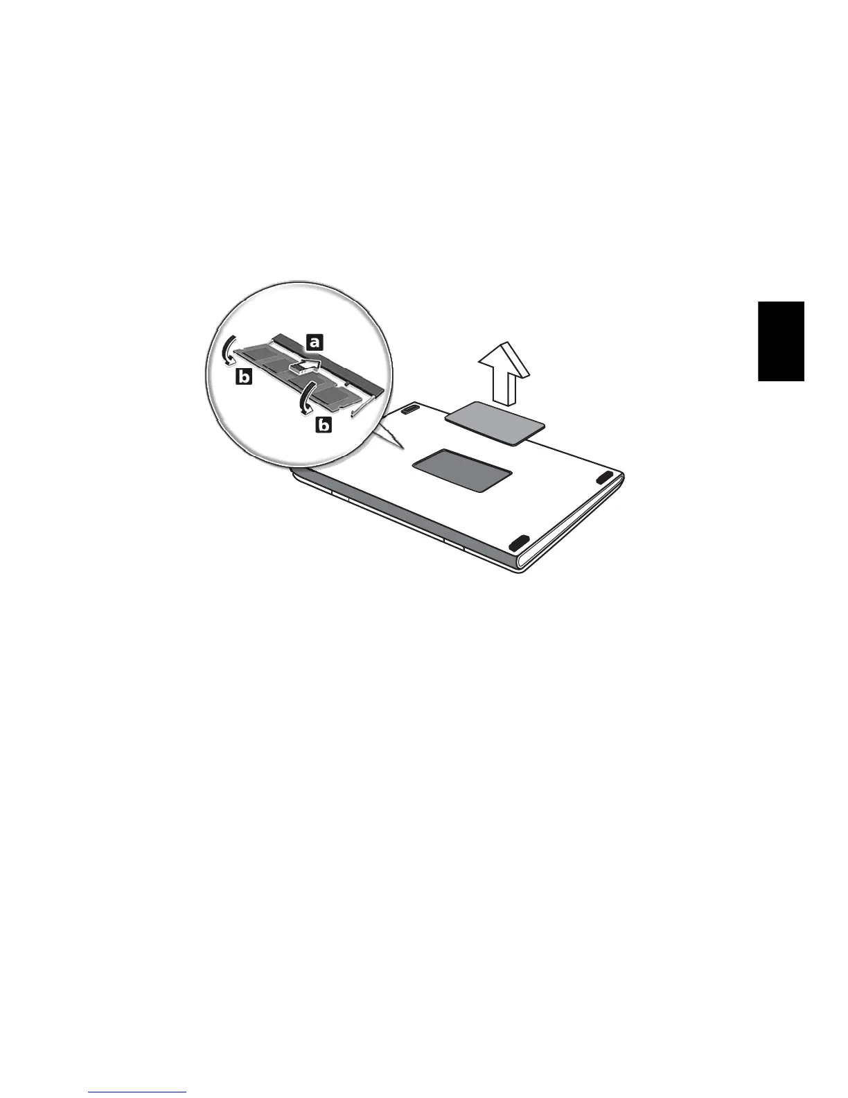 3 Inserire diagonalmente il modulo di memoria nello slot (a), quindi
