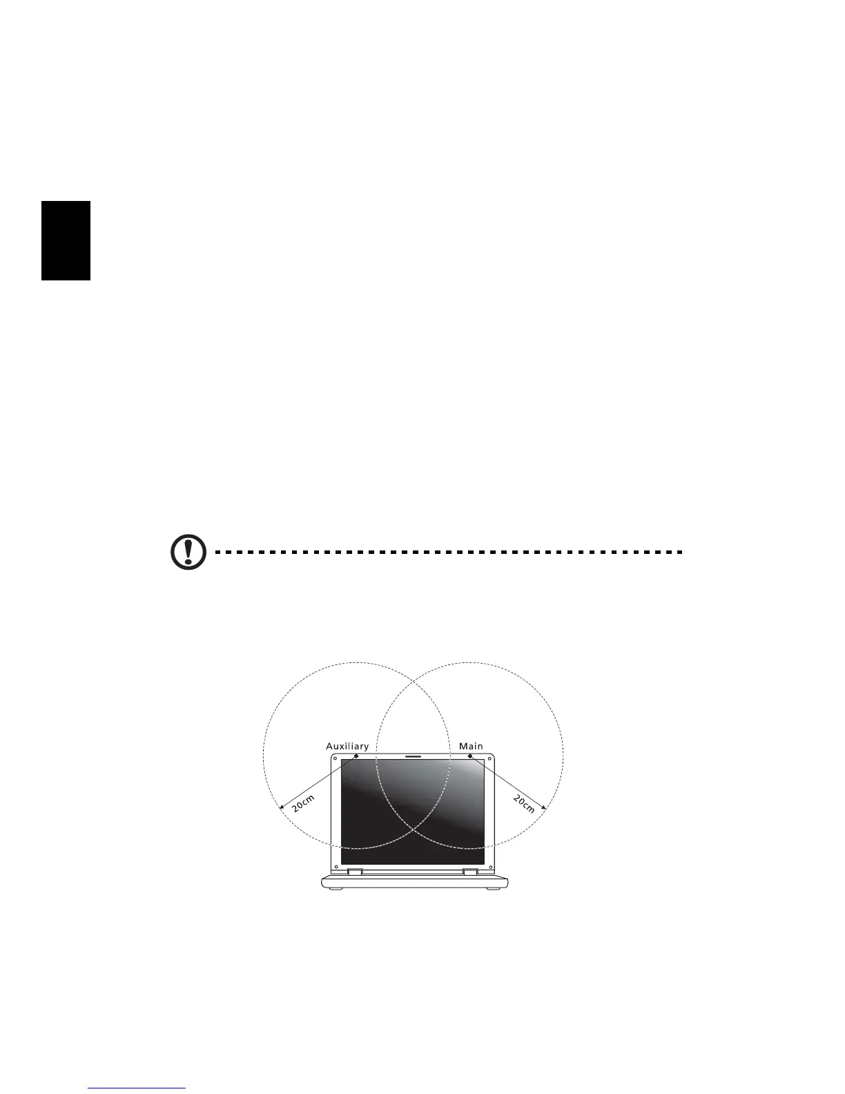 menos 20 cm (8 polegadas) entre a antena da placa LAN sem fios