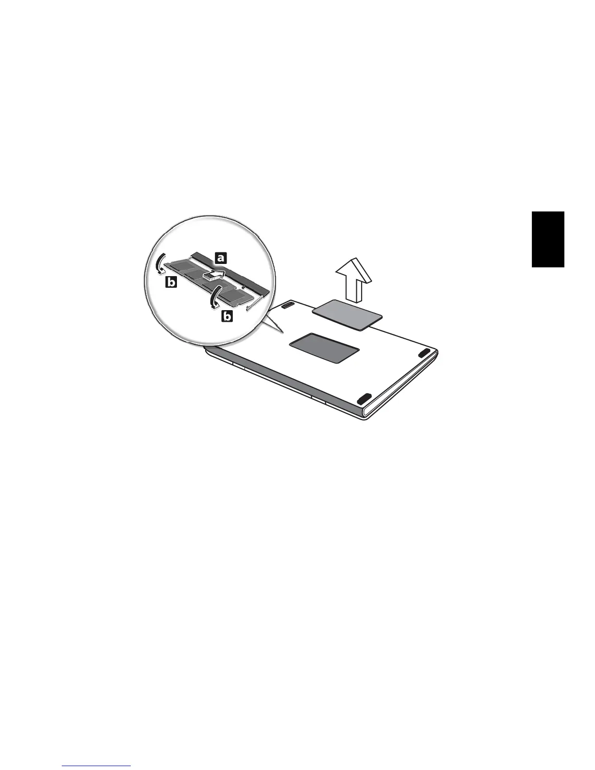 3 Sæt hukommelsesmodulet diagonalt i stikket (a), og tryk derefter