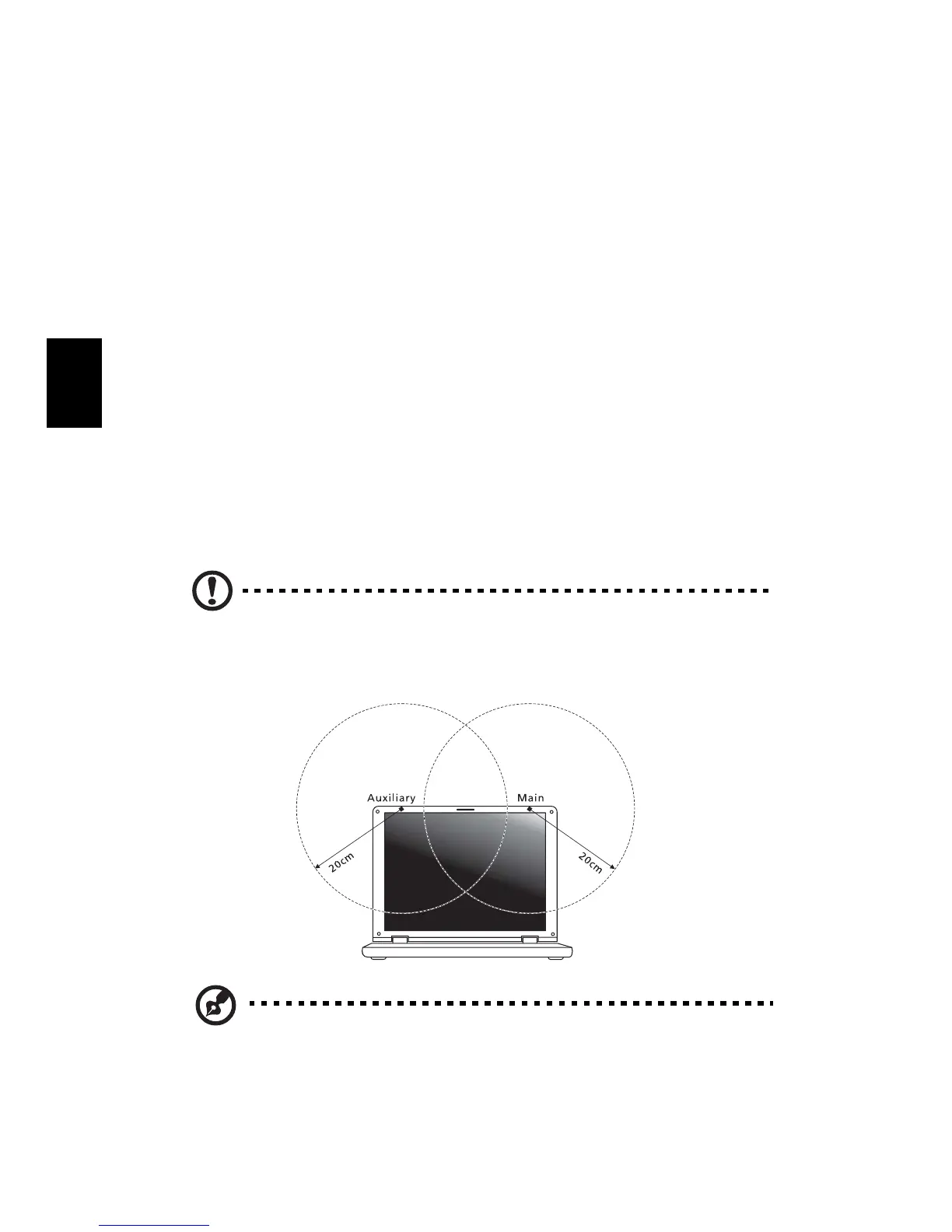 være en afstand på 20 cm (8 tommer) imellem antennen og det