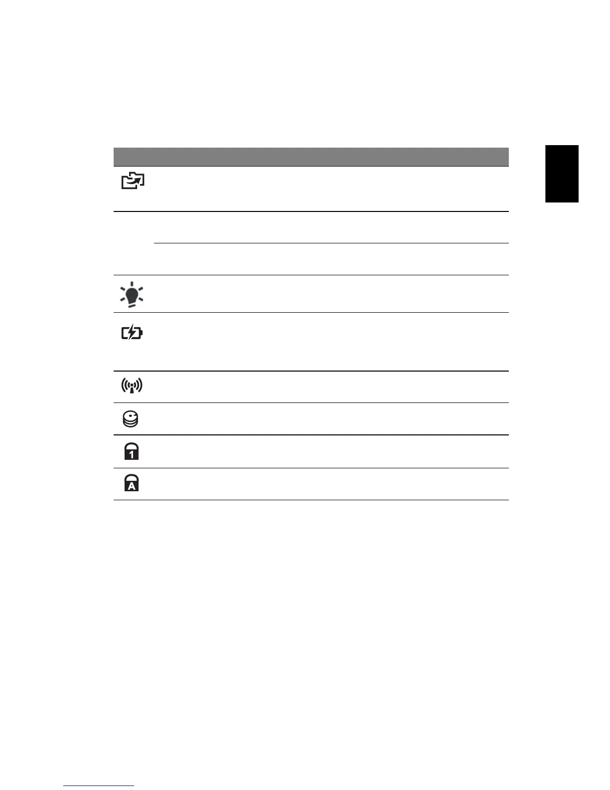 Batteriindikator Anger status för datorns batteri.