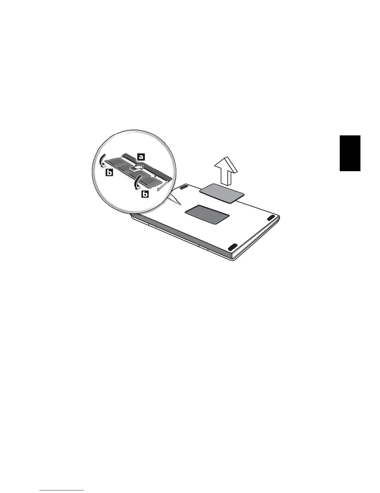 3 (a) Vložte pamät’ový modul diagonálne do pätice a (b) zľahka ho zatlačte na
