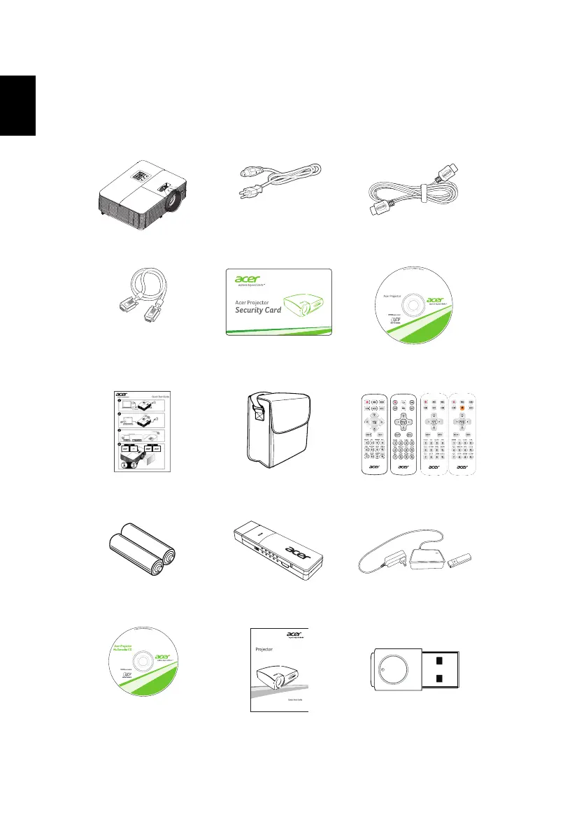 This projector comes with all the items shown below. Check to make sure your